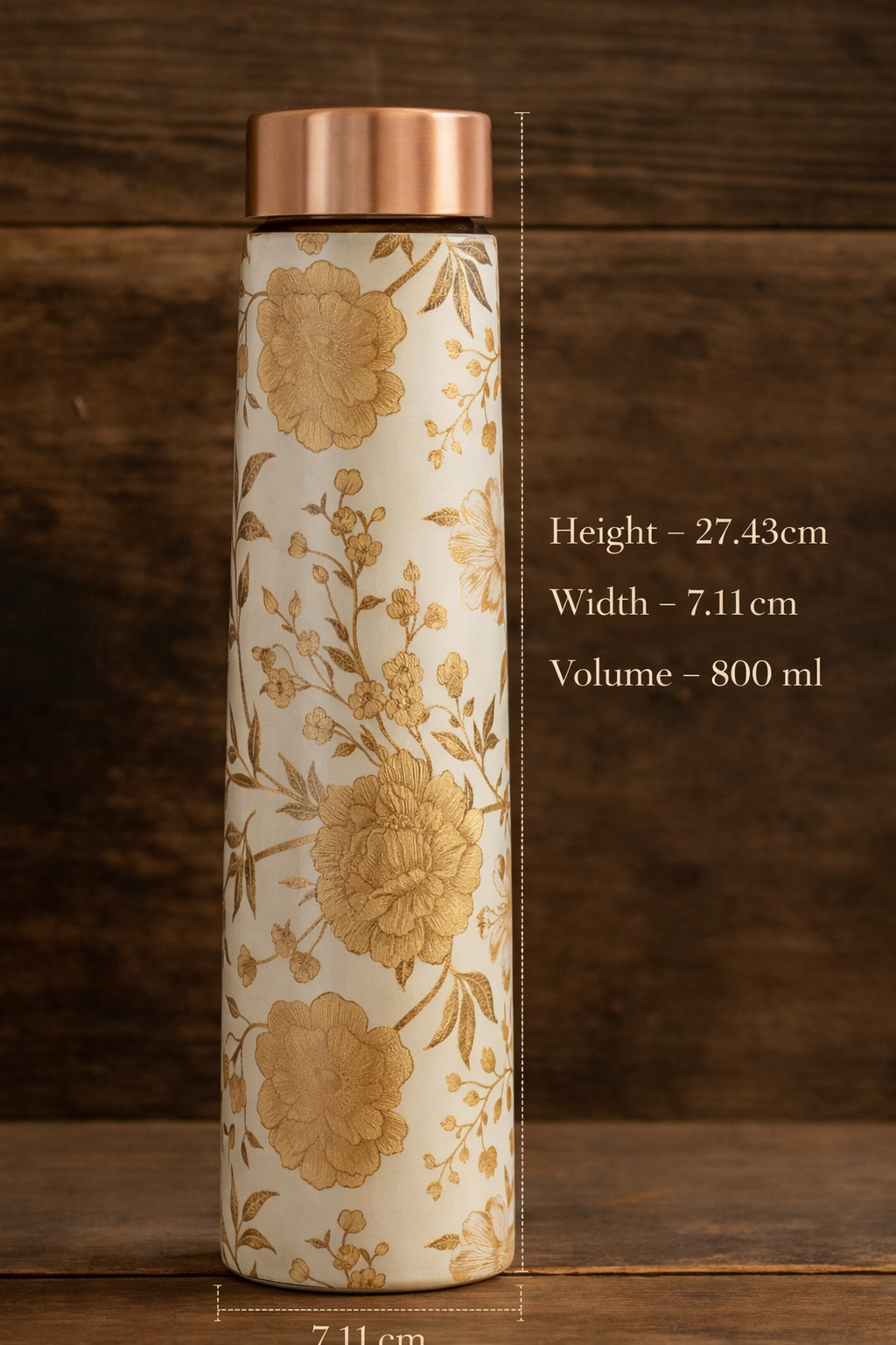 Handcrafted Gold Flower Print Pure Copper Water Bottle – Decorative Finish (800ml)