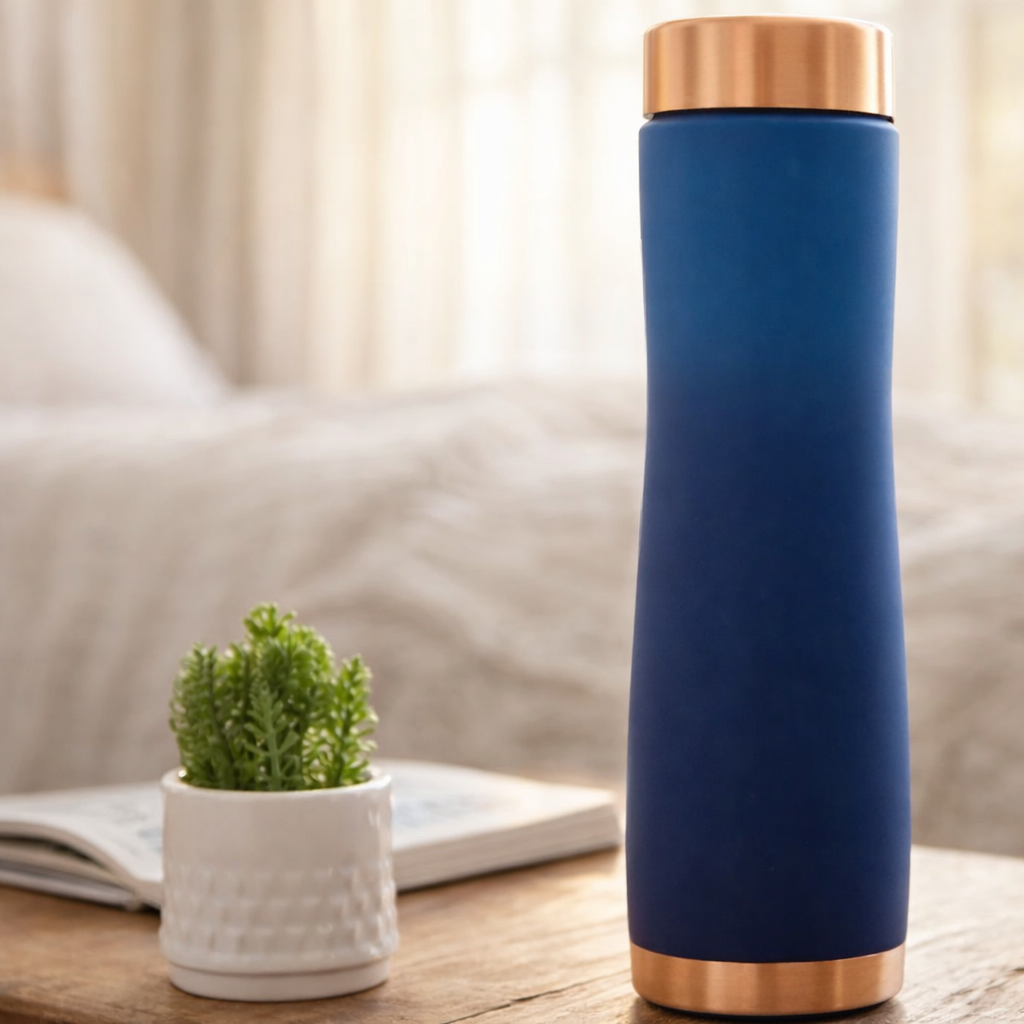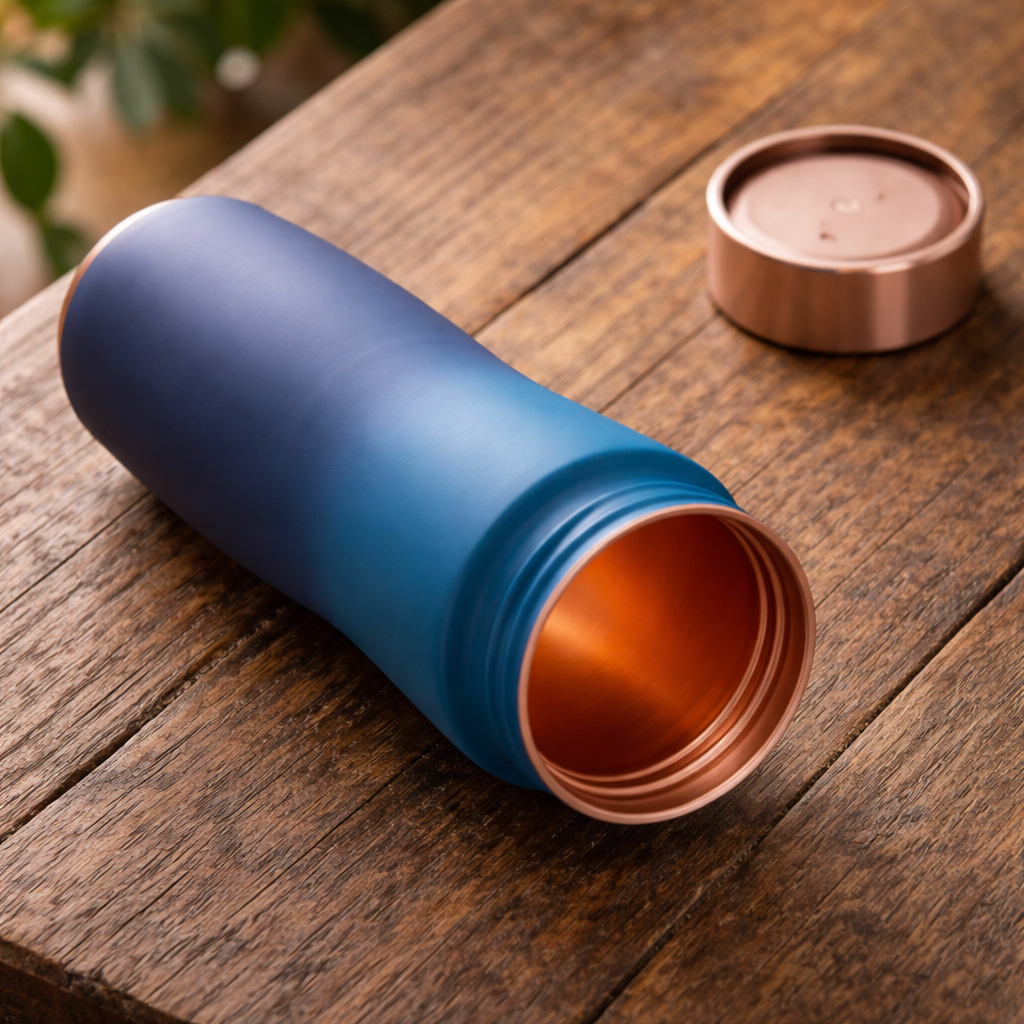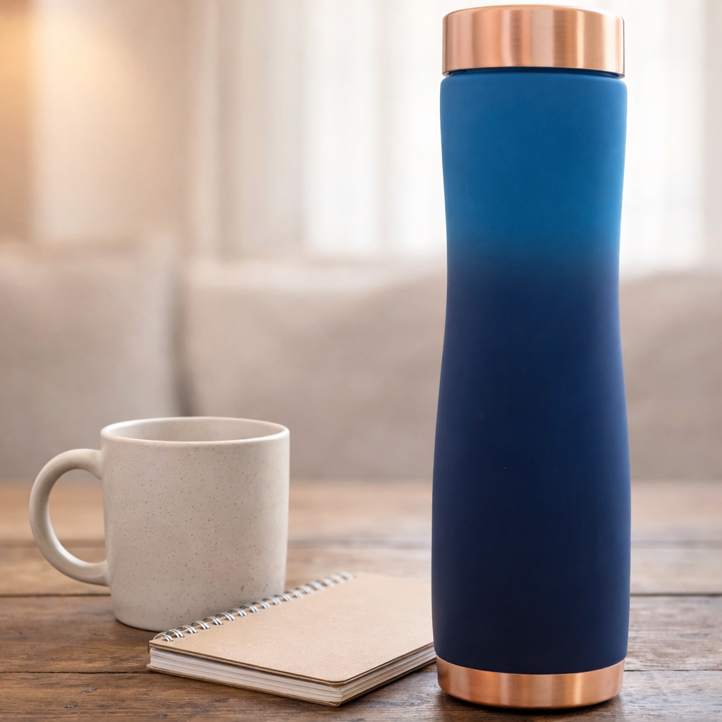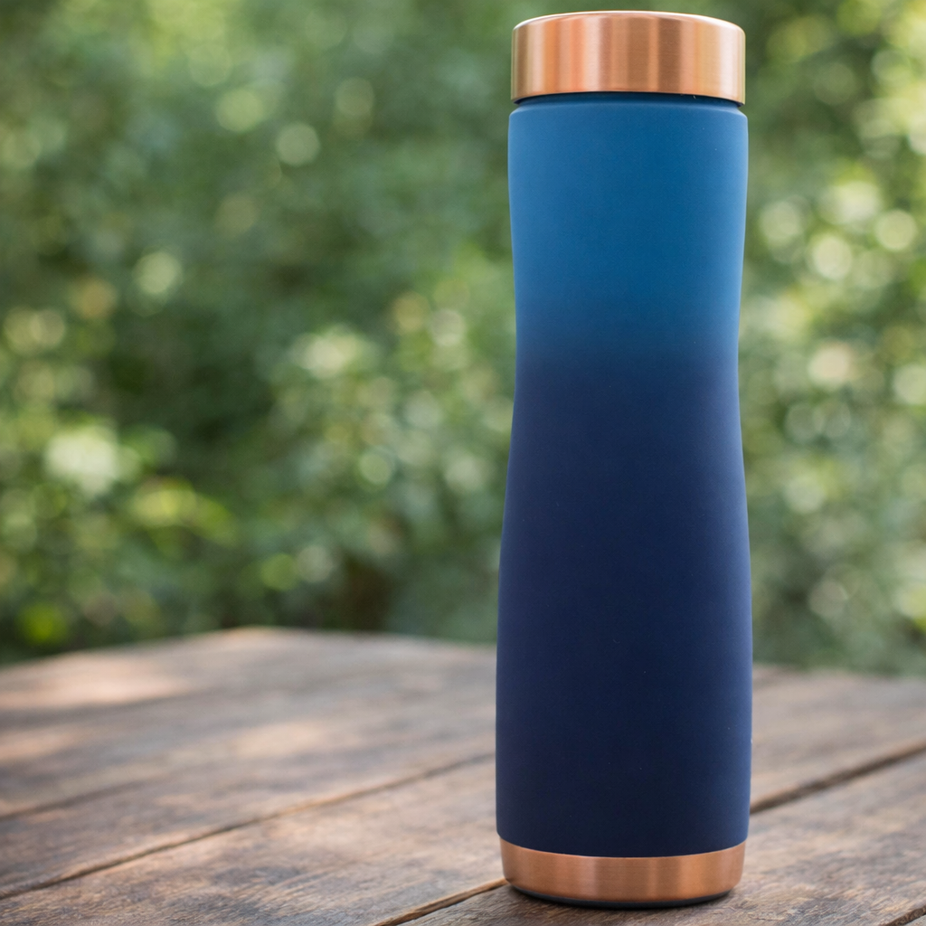 Pure Copper Pyramid Bottle – Elegant Silk Print Design Ombre Blue 1000ml