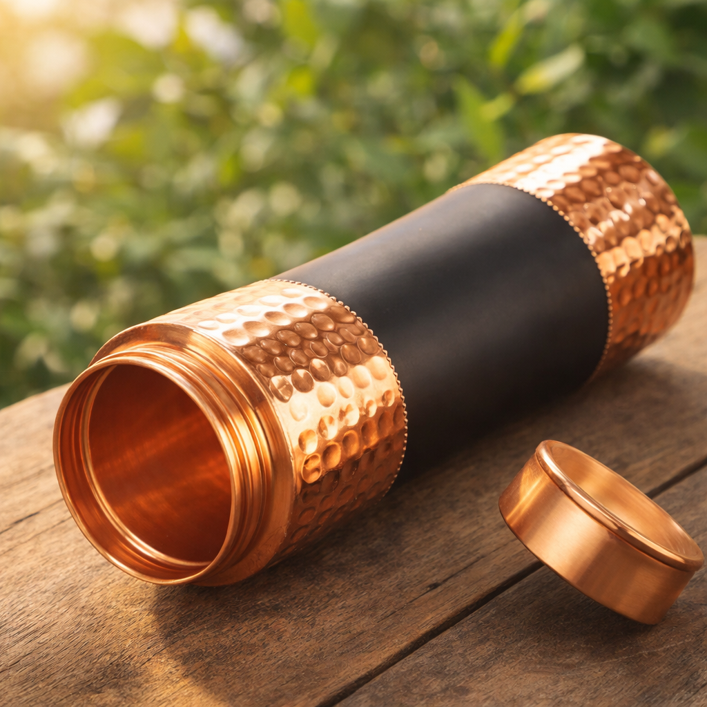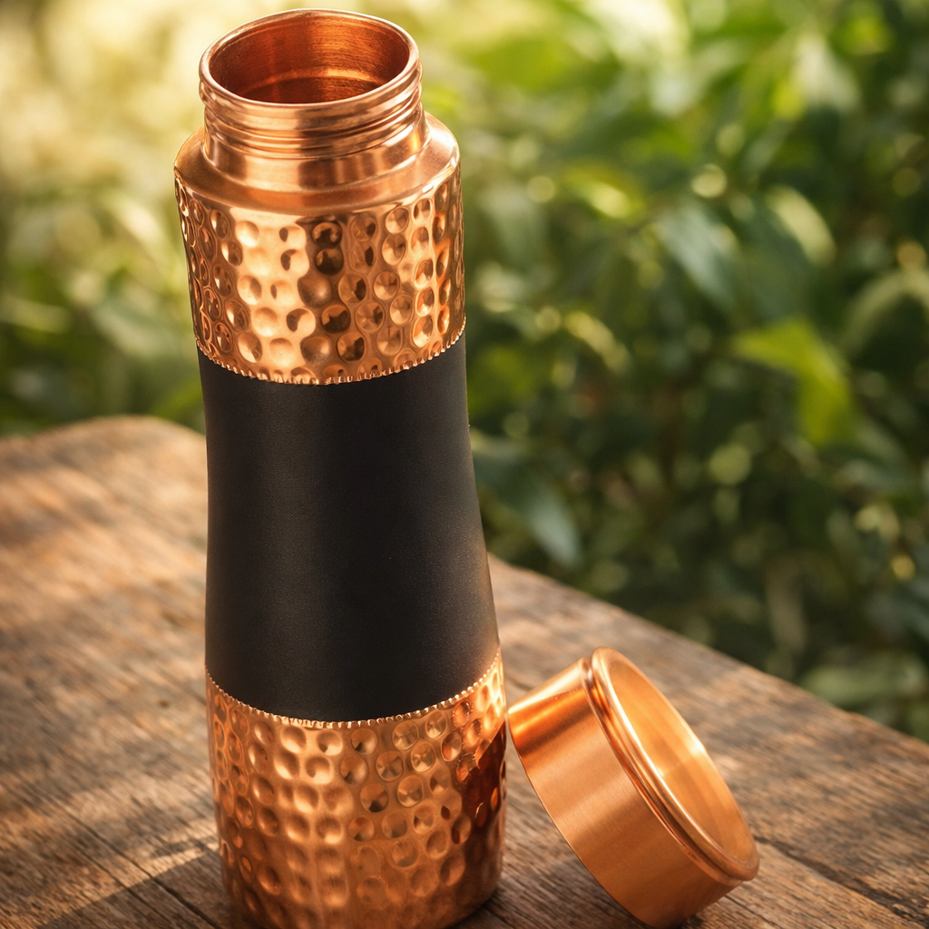 Hammered Copper Water Bottle with Matte Black Finish – 1000 mL