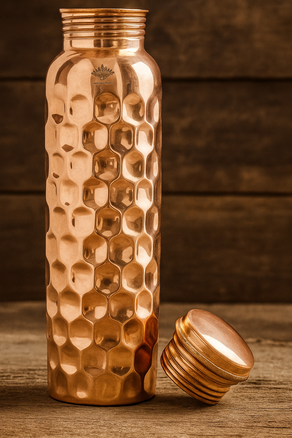 Stay hydrated in style with the Nature’s Cart Copper Hammered Water Bottle (900ml)—a perfect harmony of health, heritage, and design.