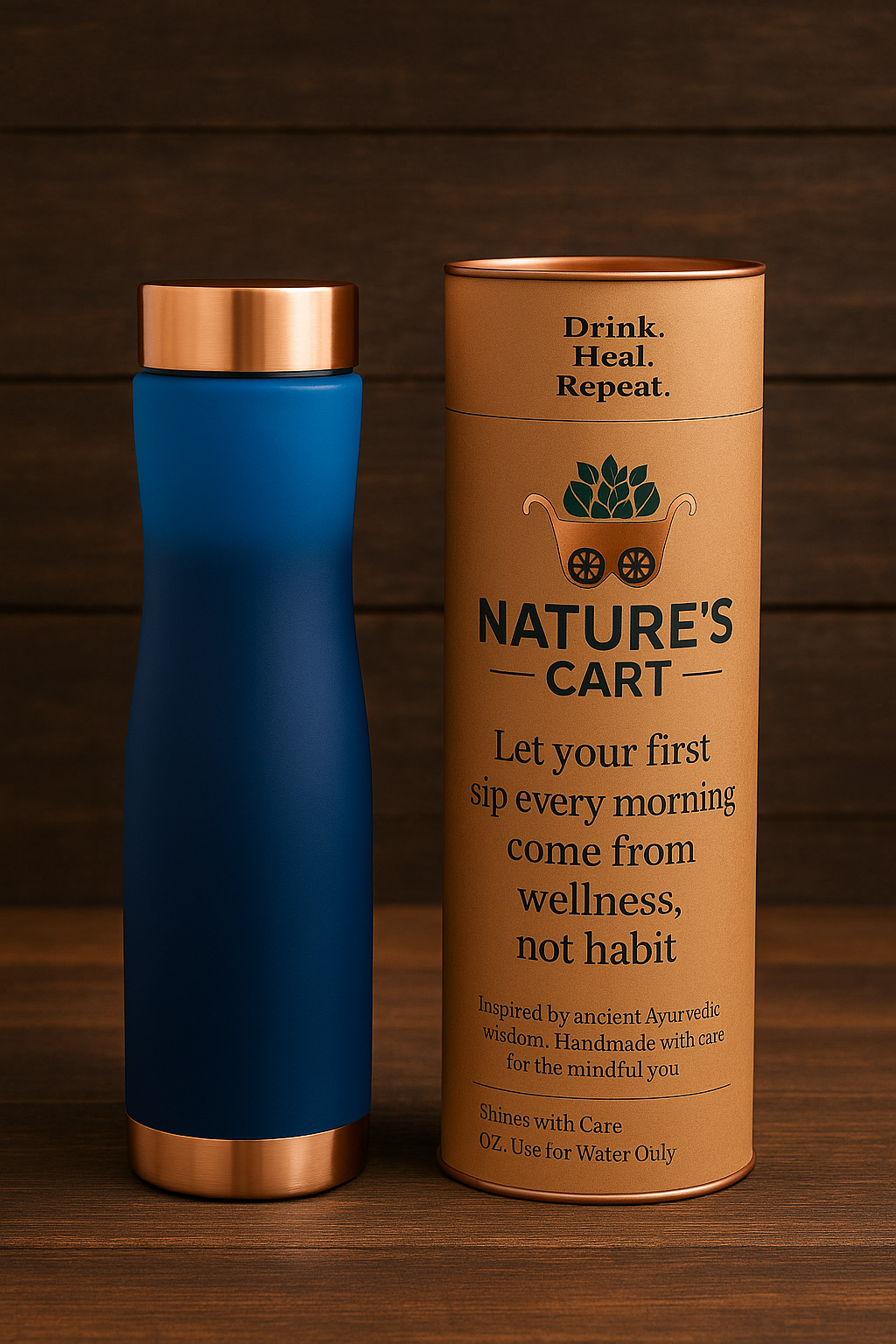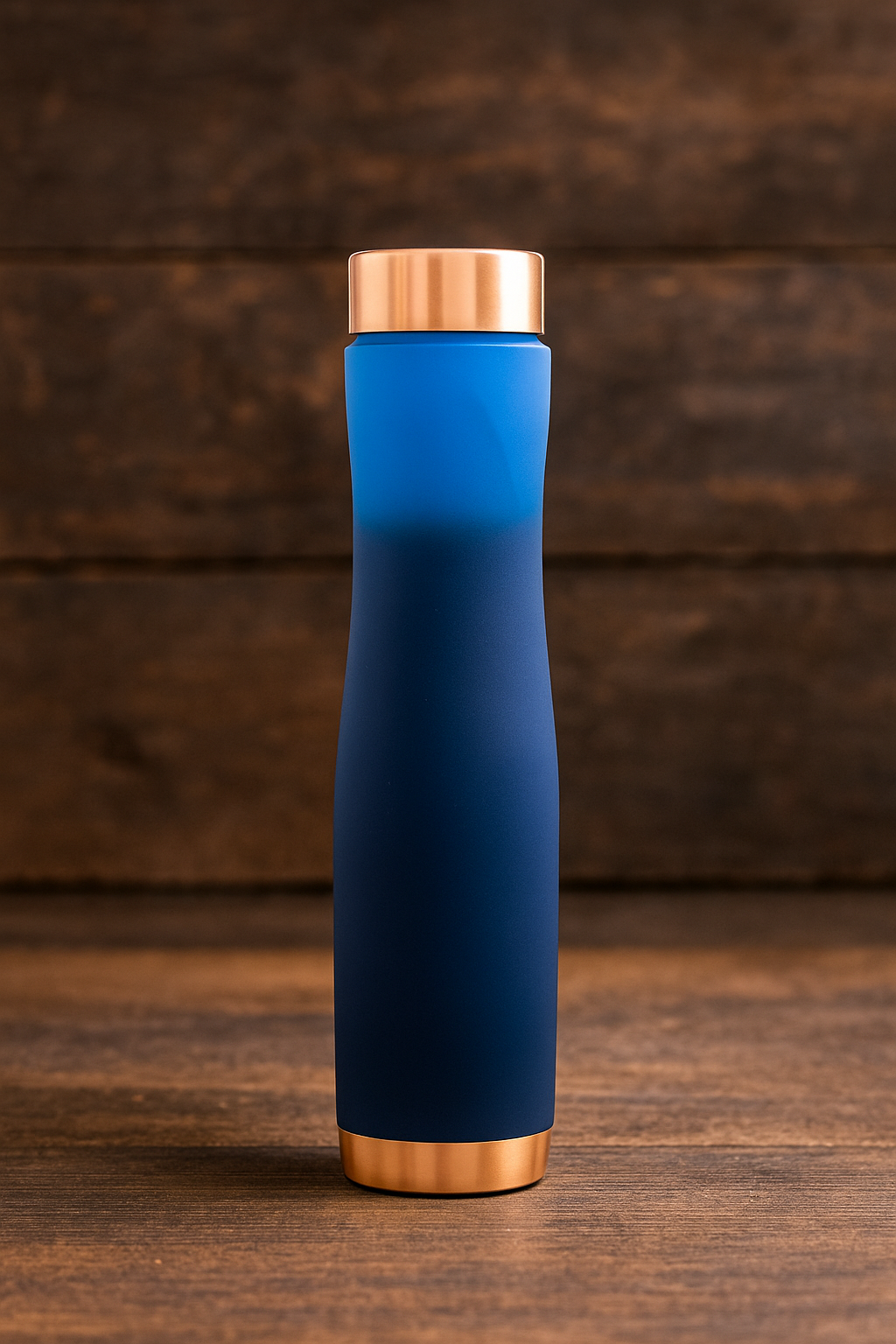 Pure Copper Pyramid Bottle – Elegant Silk Print Design Ombre Blue 1000ml