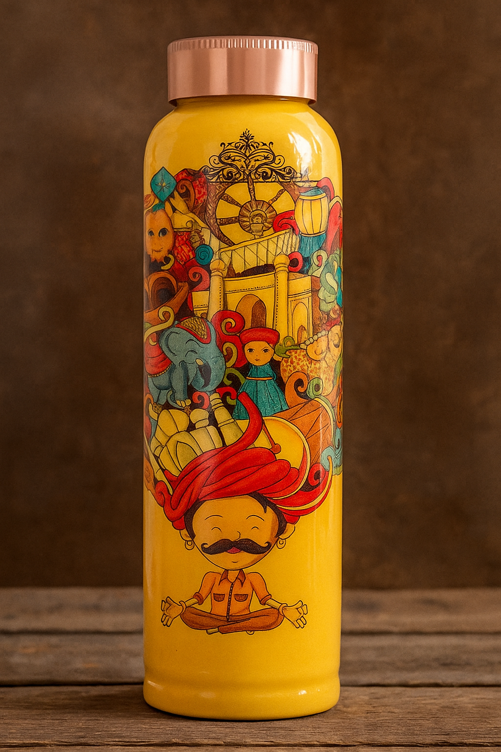 Rajasthani Meena "Padharo Mhare Desh" Printed Theme Pure Copper Bottle 900 ML