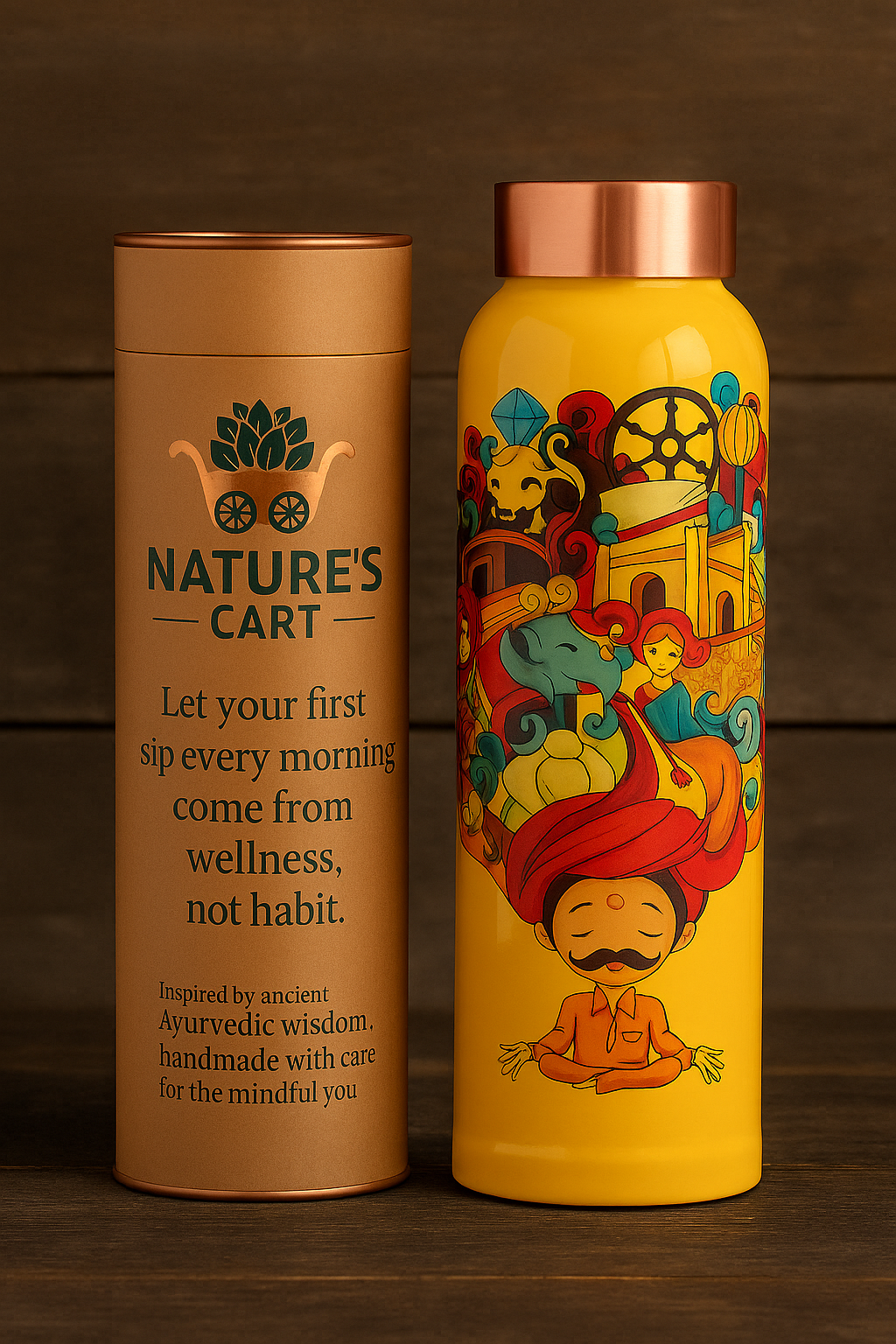 - Material: Crafted from high-quality copper, the bottle offers several health benefits associated with copper drinking vessels. Copper is known for its antimicrobial properties and ability to aid digestion, making it a popular choice for water storage.