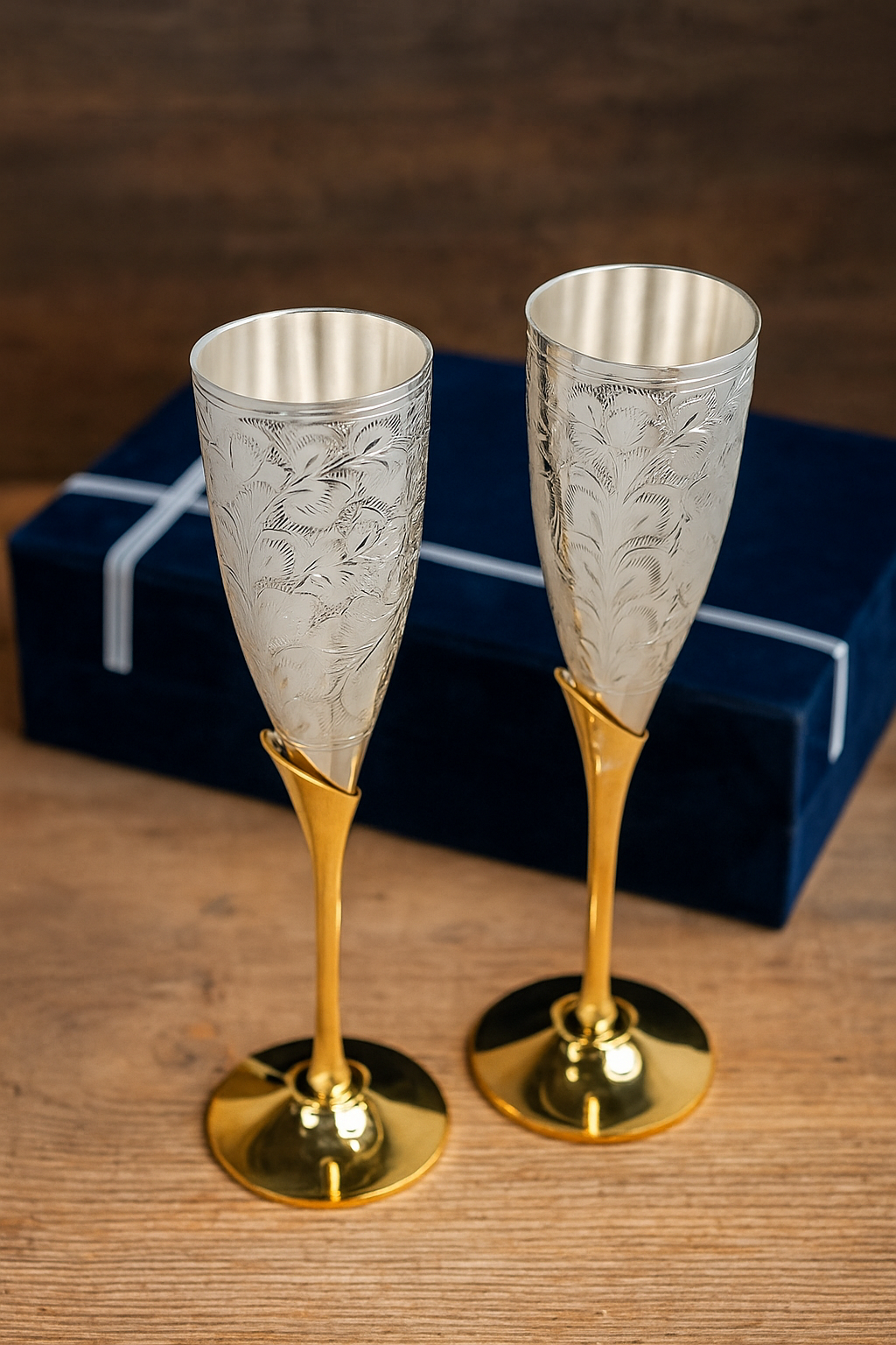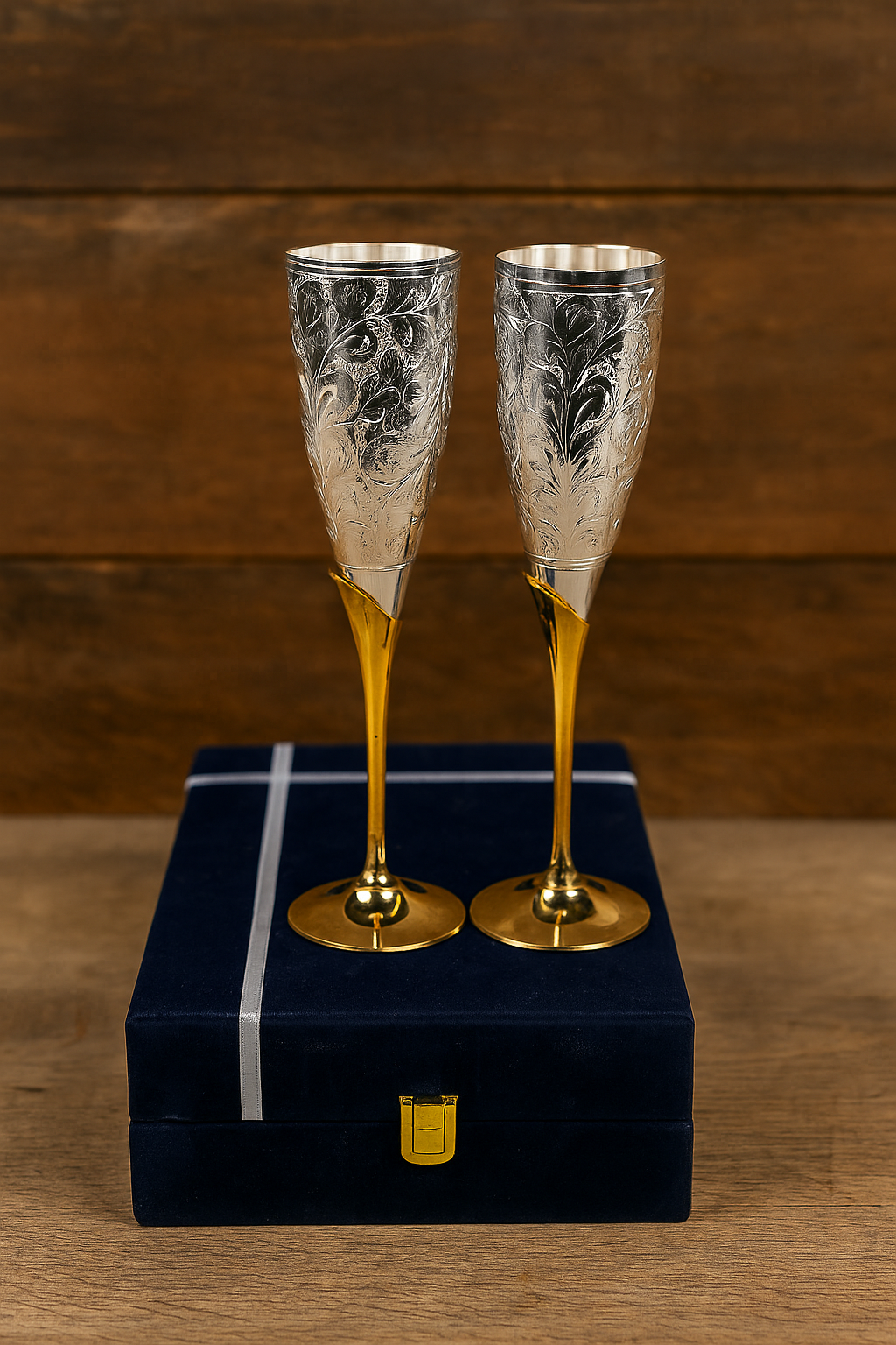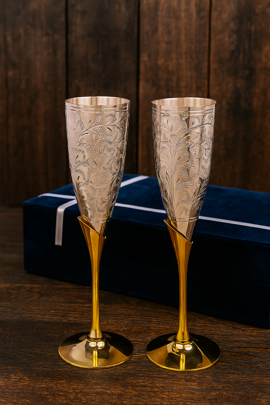 Silver Plated & Brass Champagne Wine Glass Gift Set of 2