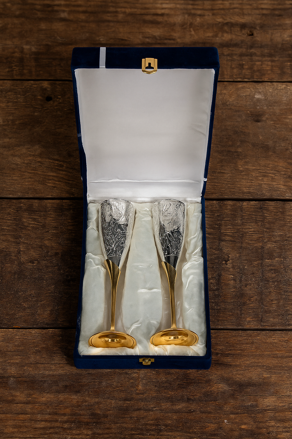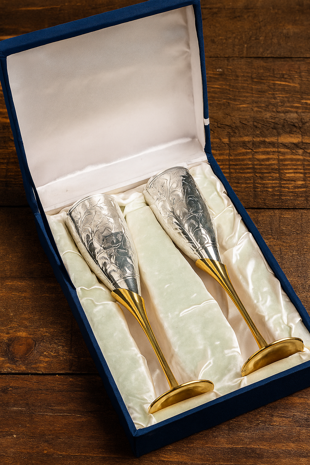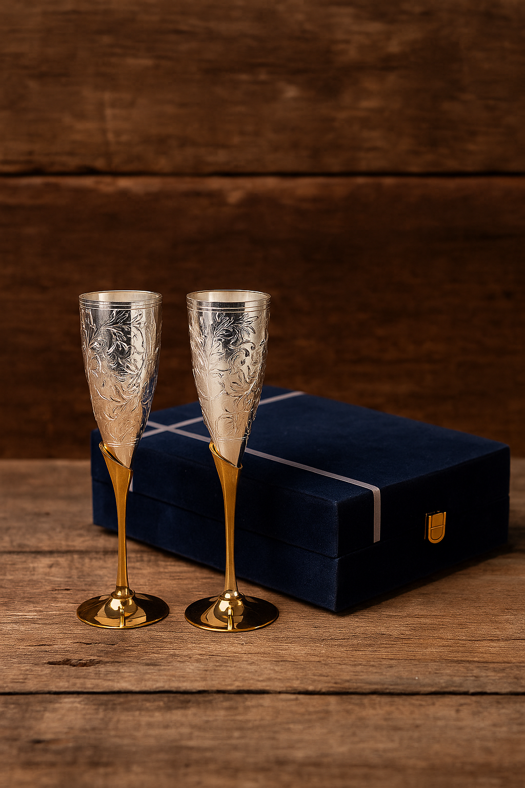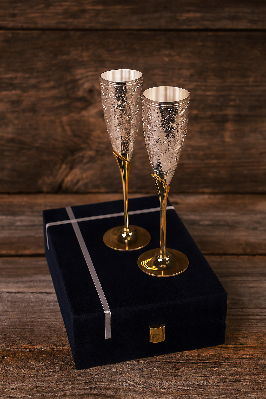 Silver Plated & Brass Champagne Wine Glass Gift Set of 2