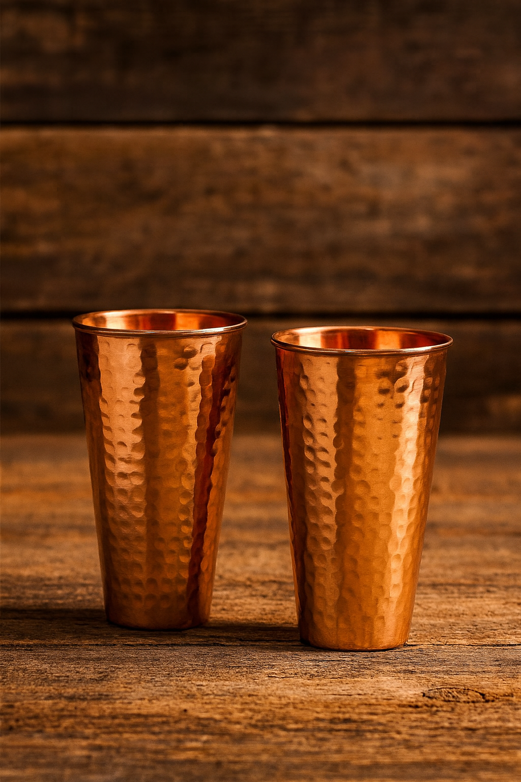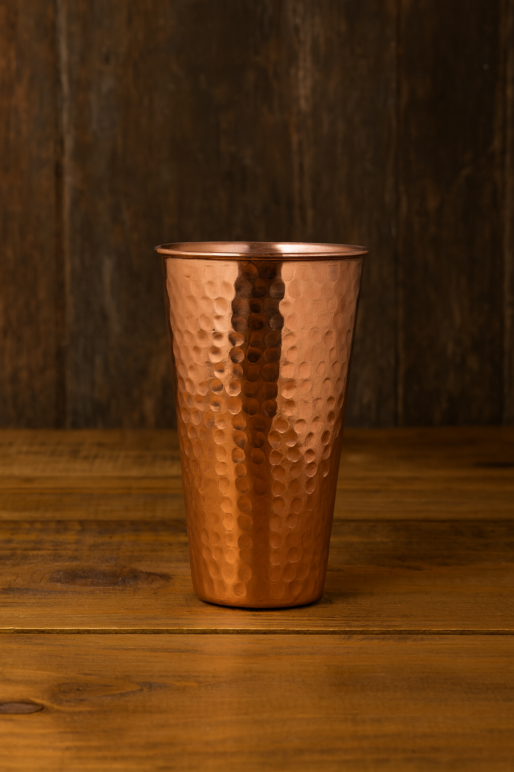 Enjoy timeless elegance with this 500ml pure copper glass, beautifully handcrafted with a fine hammered texture and smooth polished finish. Designed by skilled artisans, it reflects the charm of traditional metalwork blended with modern simplicity.
