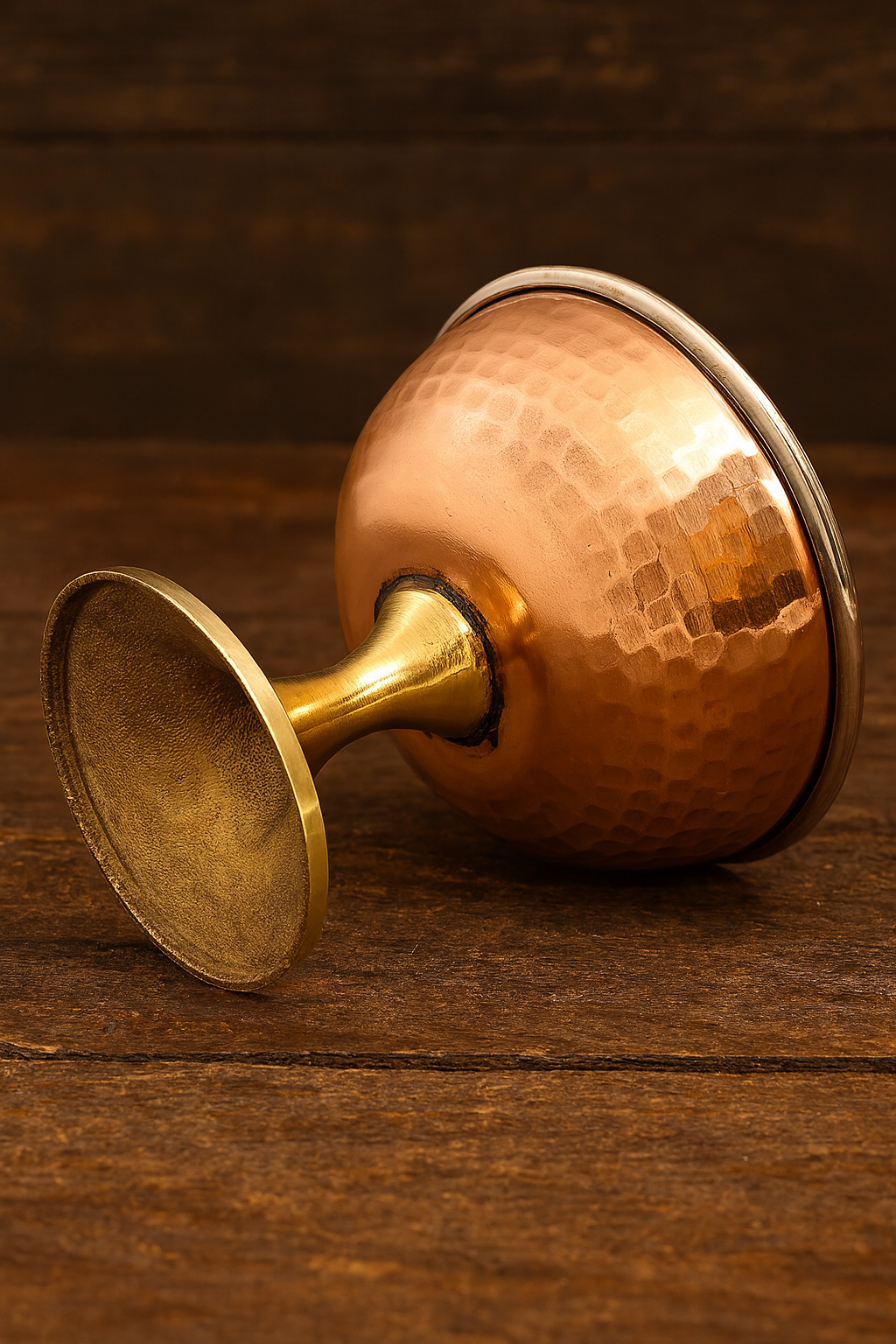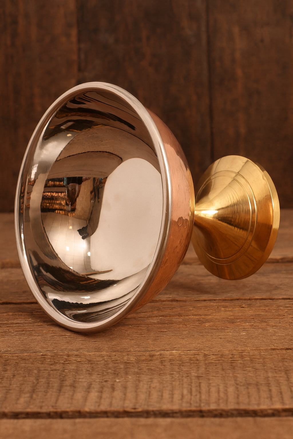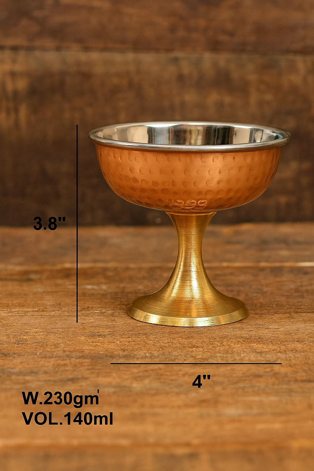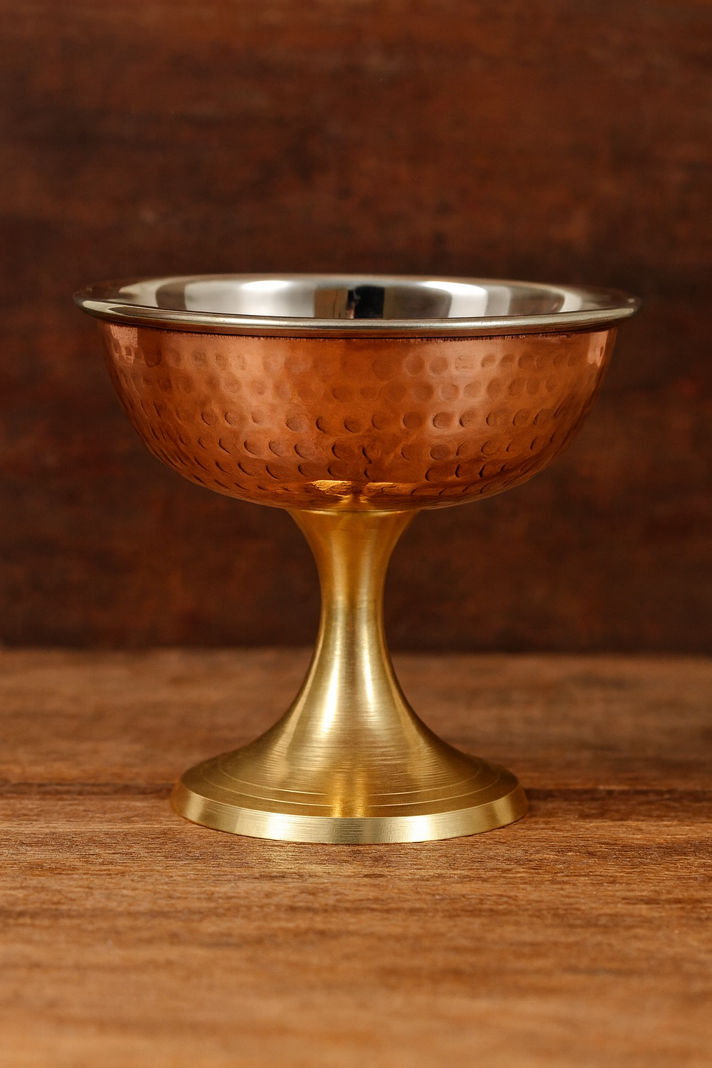 Steel & Copper Ice Cream Bowl with Brass Stand – Handcrafted Dessert Bowl 140ml