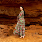 You will fall in love with this gorgeous piece; our boho maxi dress is bright, breezy and light. The elegant floral and framed design makes this dress timeless.
