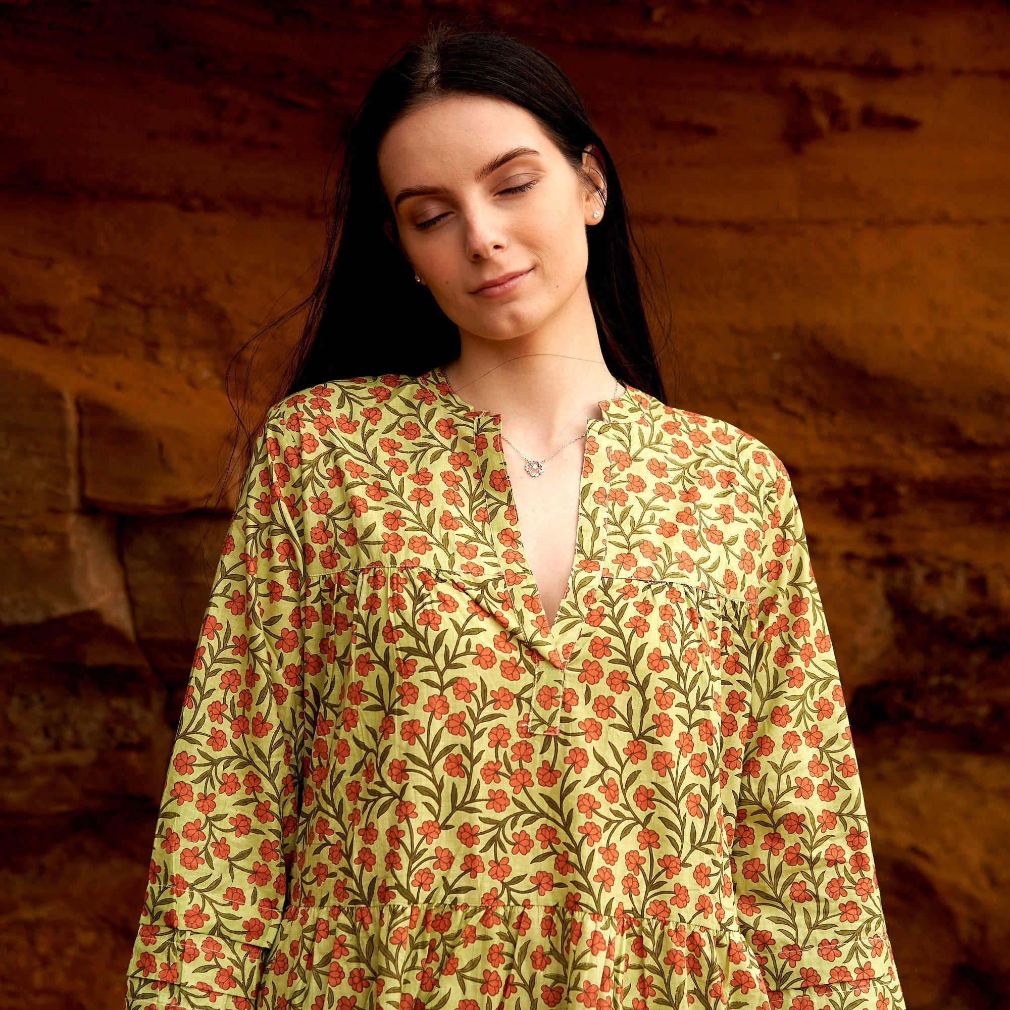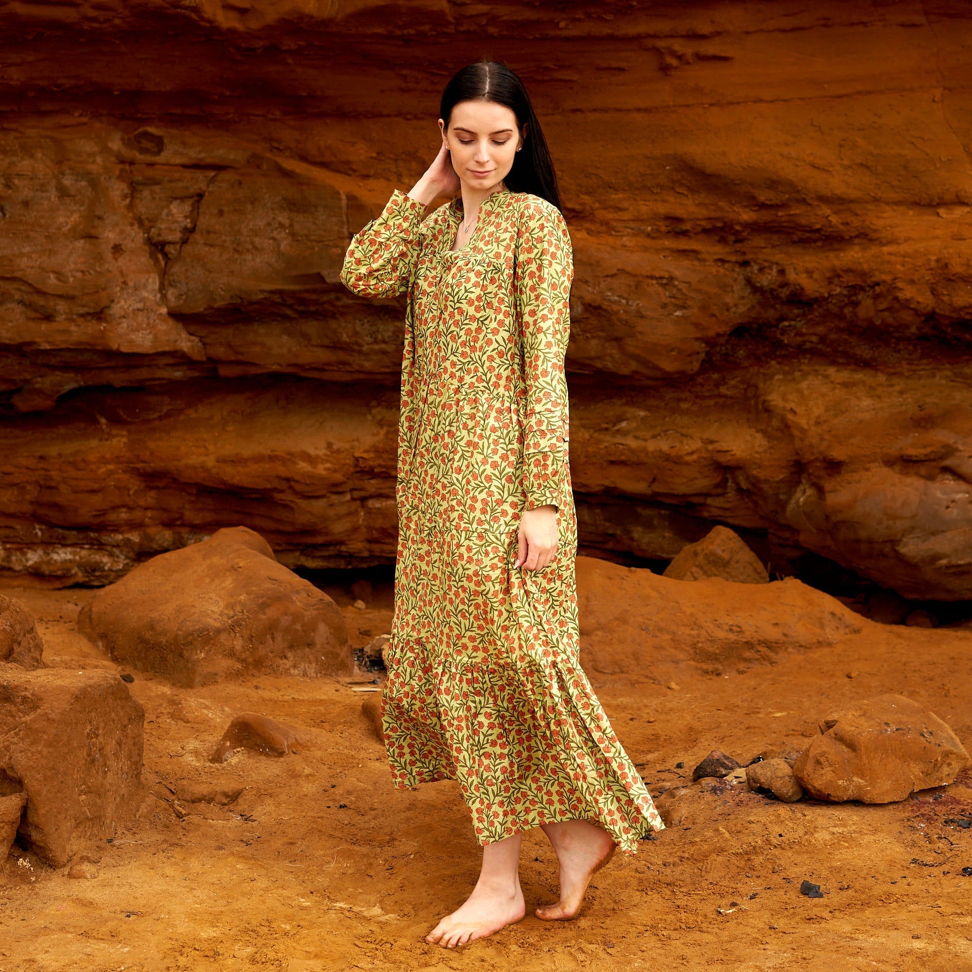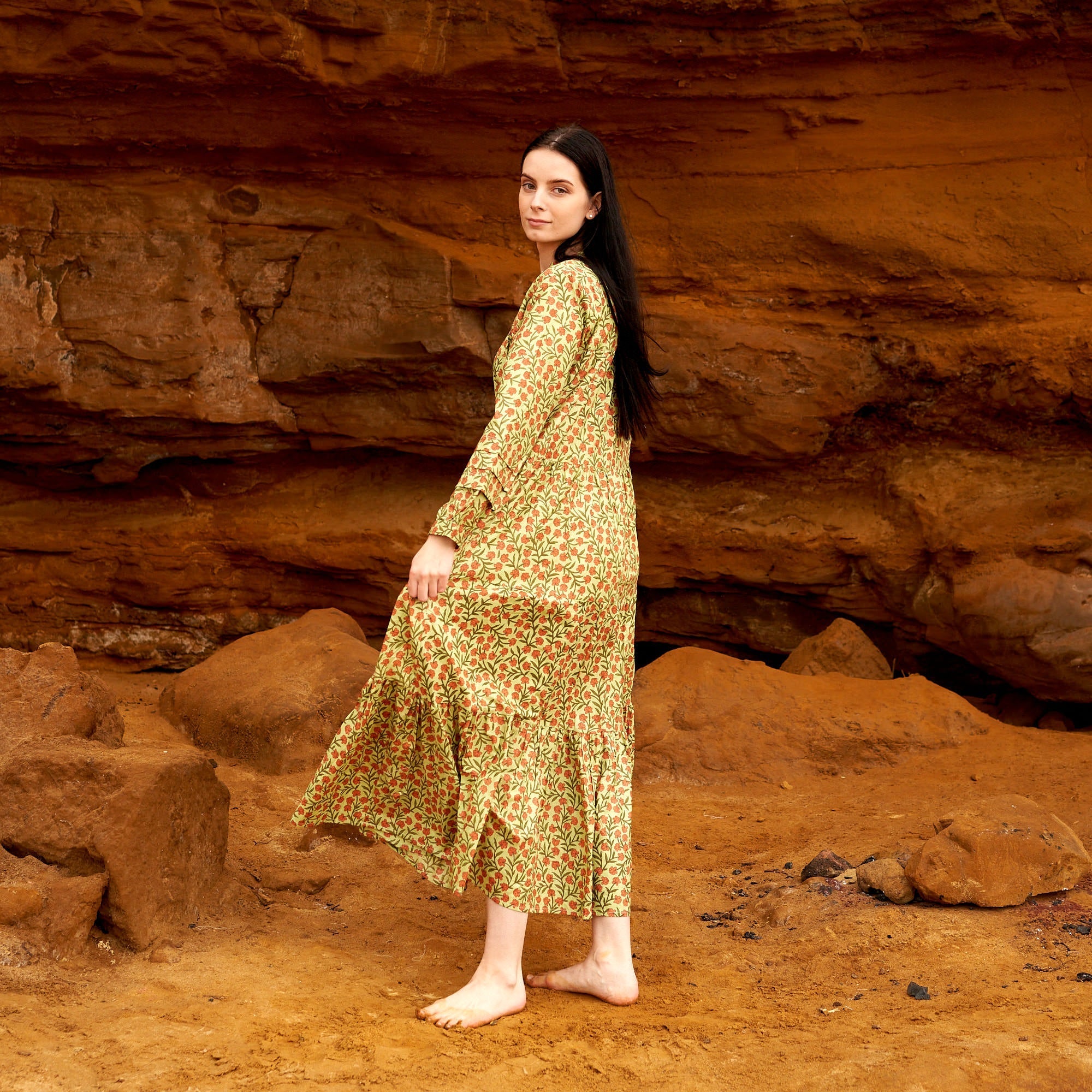 Sunset Garden Cotton Maxi Dress | Warm Hues