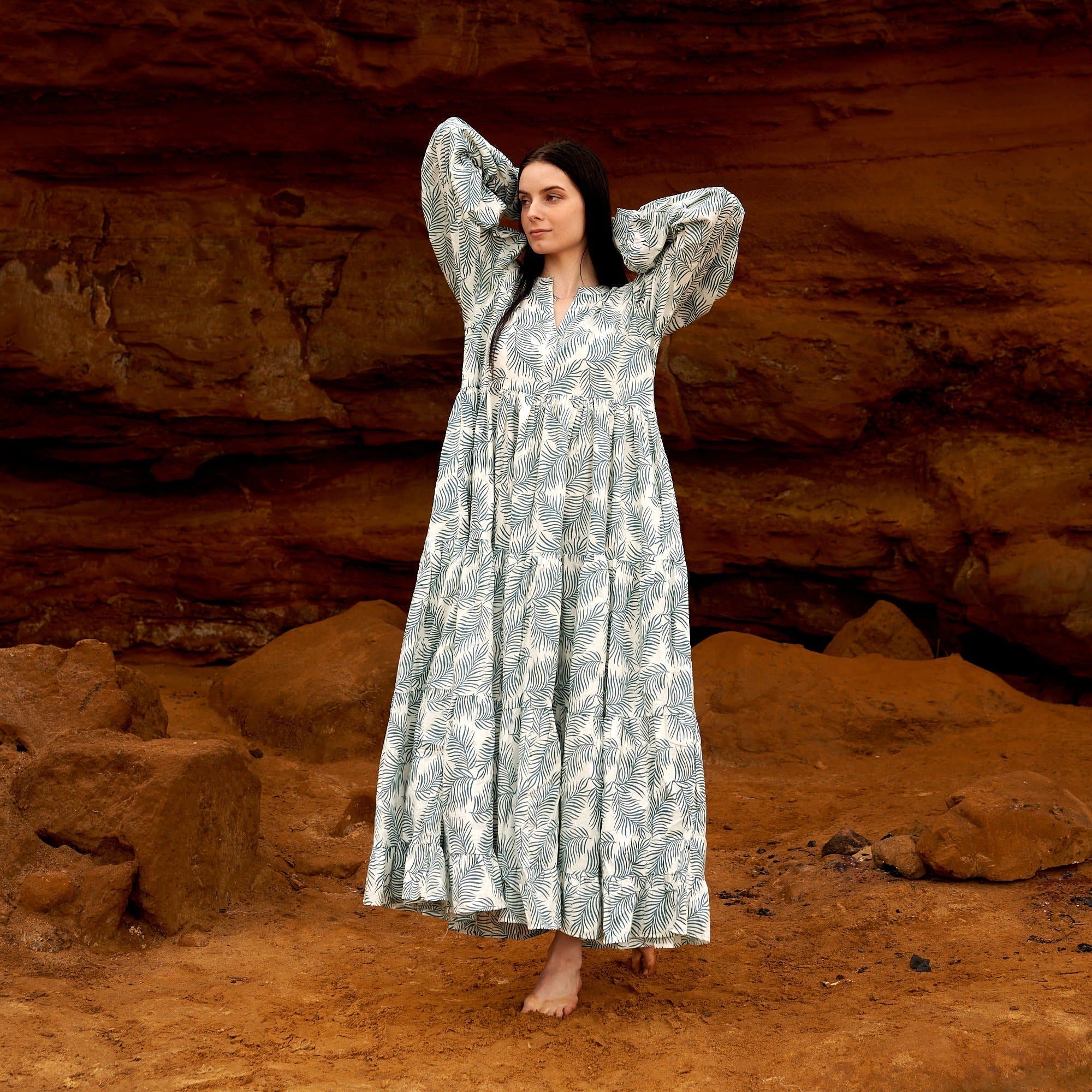 Verdant Escape Cotton Maxi Dress | Nature Inspired