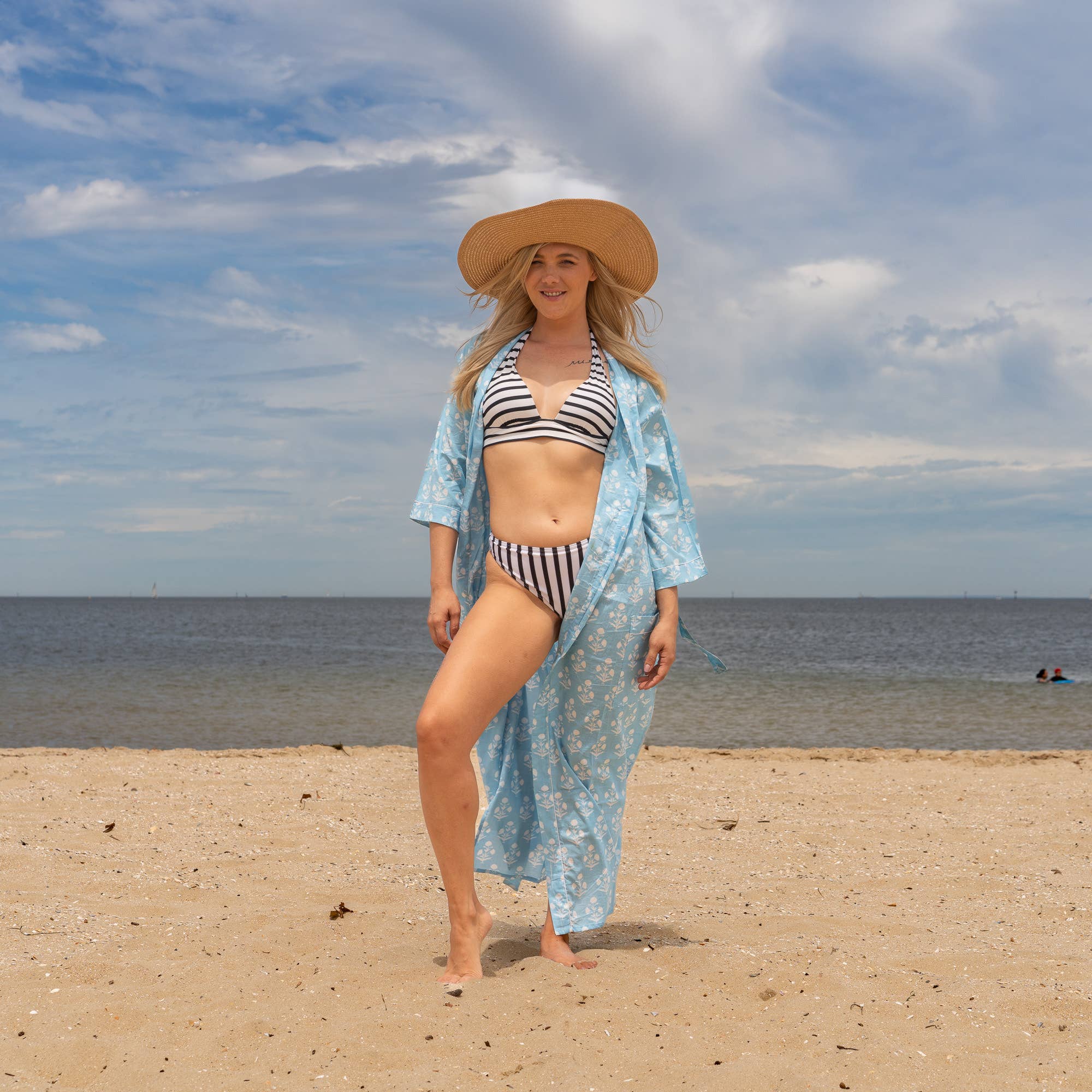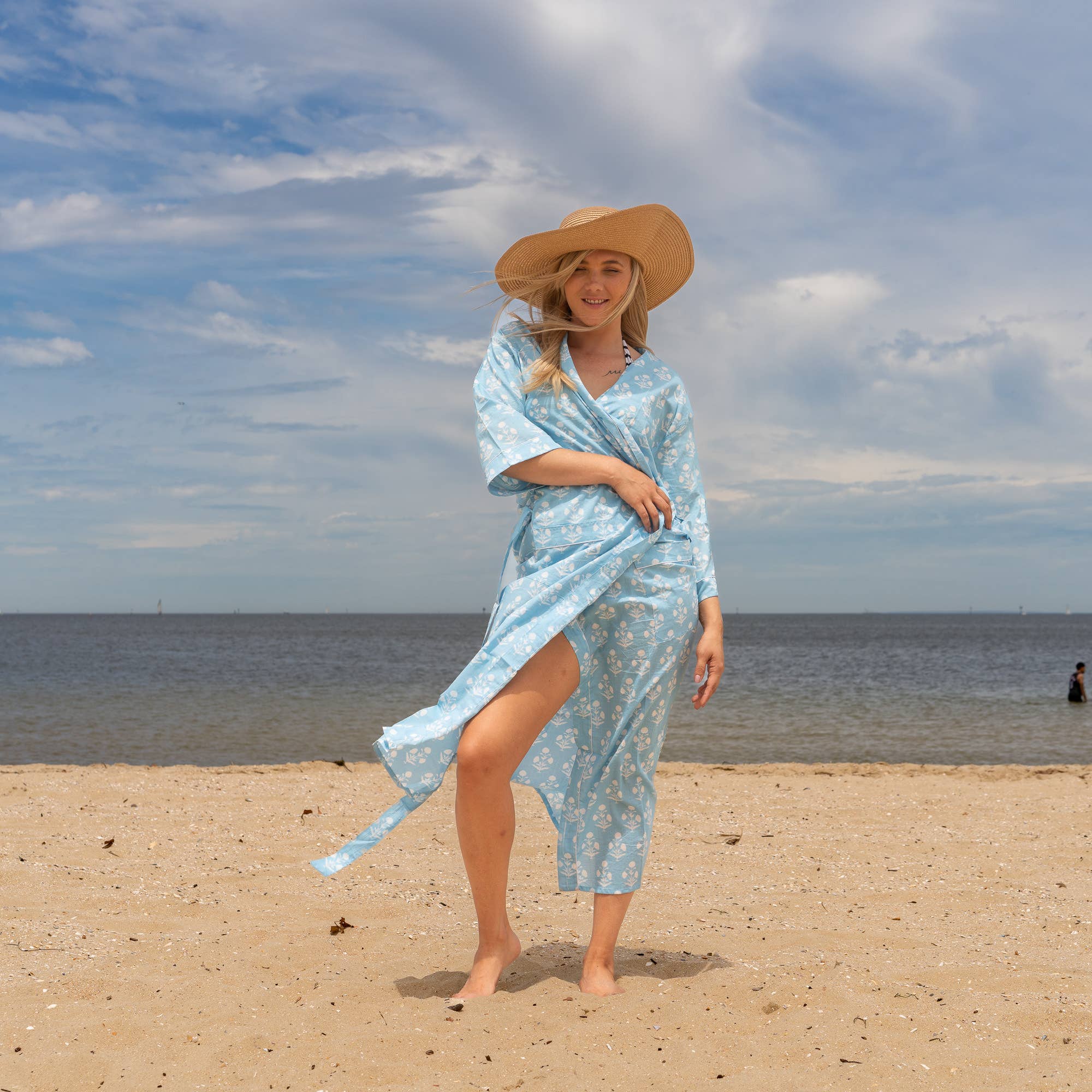 BLUE BLOCK PRINT' Women's Cotton Kimono Robe - Chic
