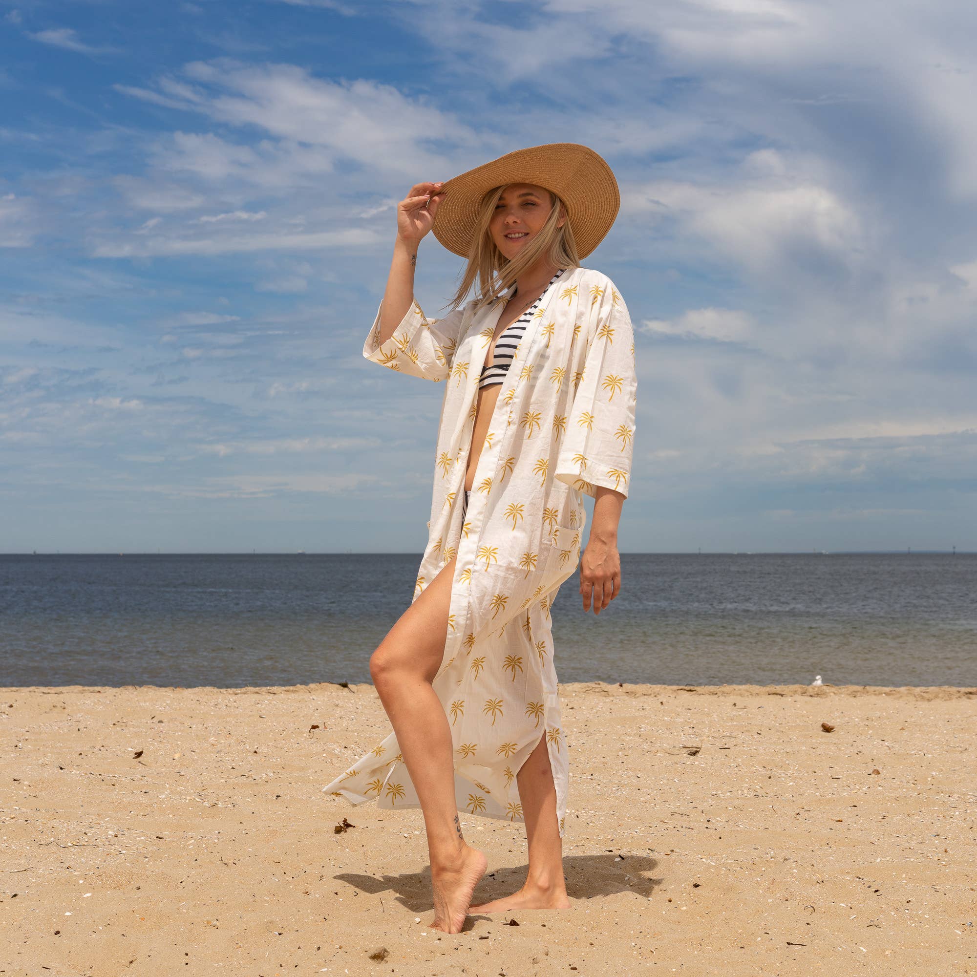 BOHO PALM' Women's Cotton Kimono Robe - Boho Chic
