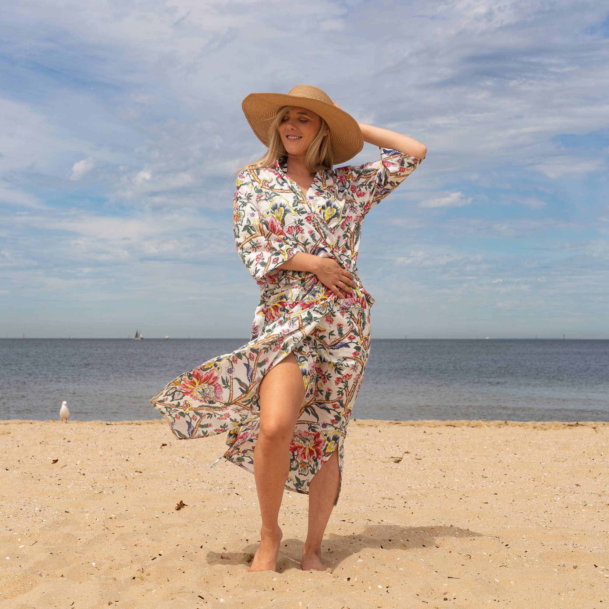 FLORAL ANTHRO' Women's Cotton Kimono Robe - Bold Floral