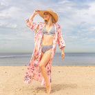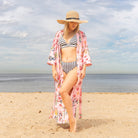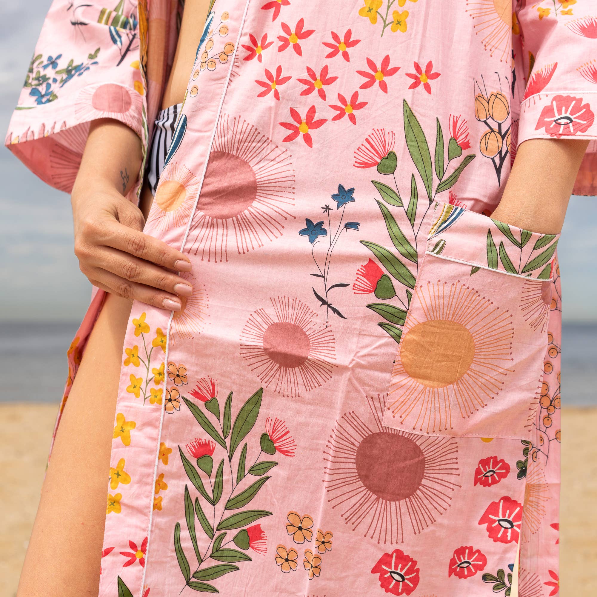 FLORAL BLOCK PRINT' Women's Cotton Kimono Robe - Unique