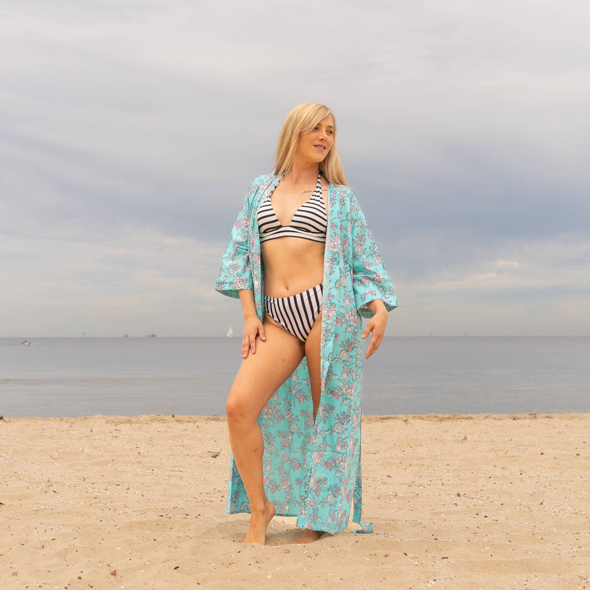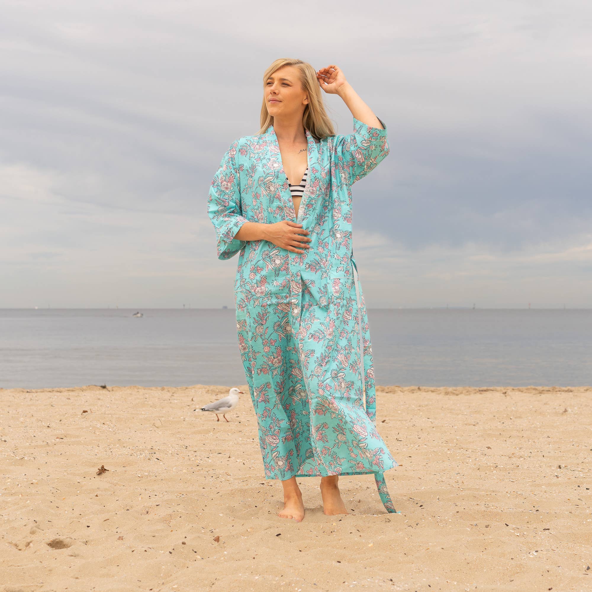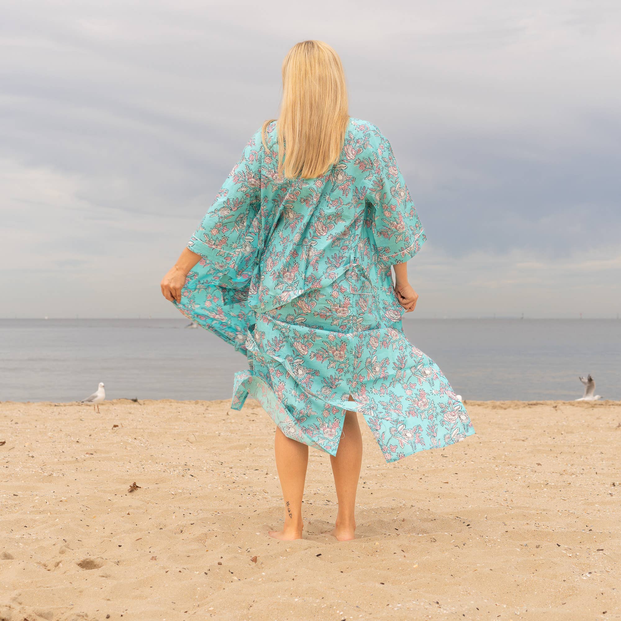 FRIDA BLUES' Women's Cotton Kimono Robe - Colourful Style