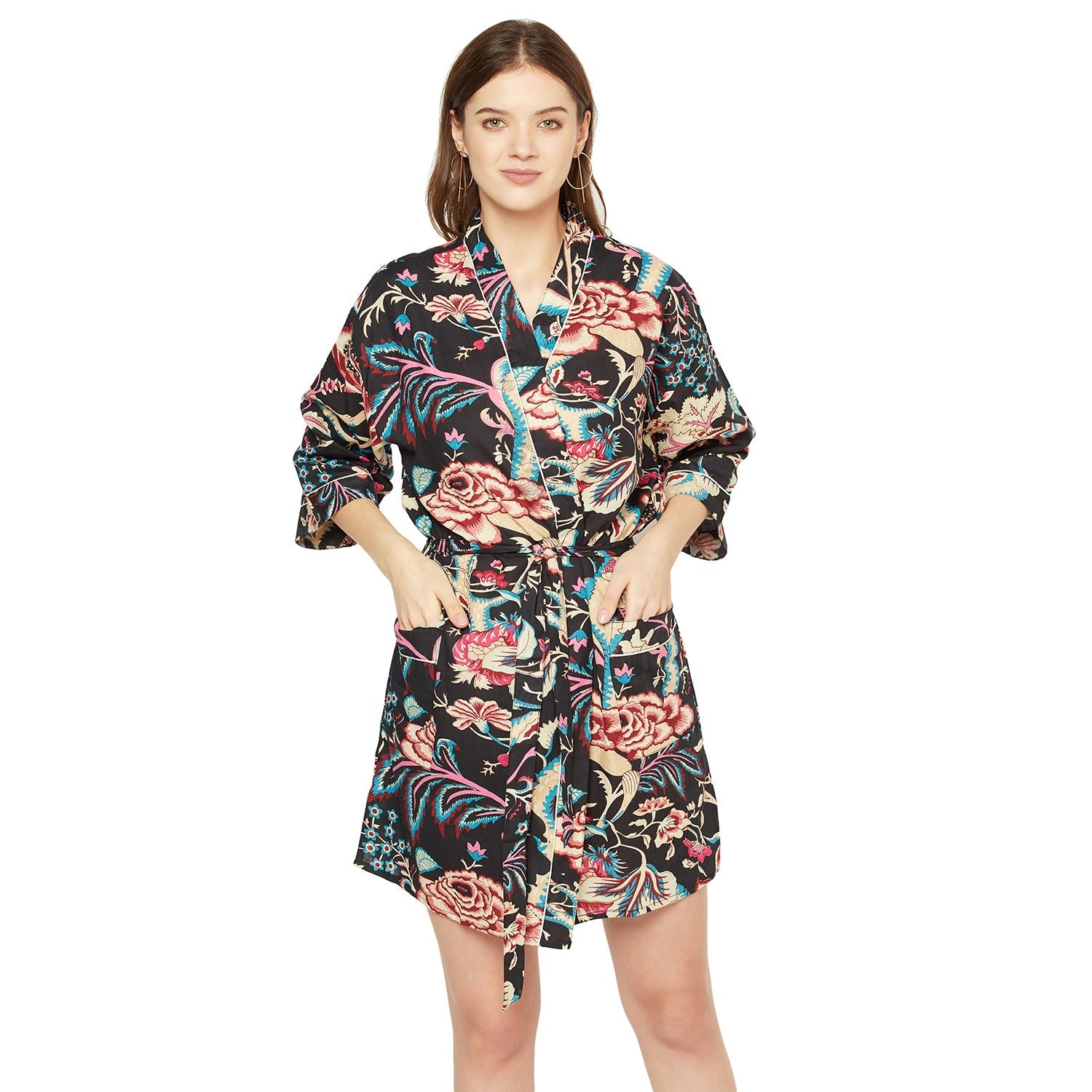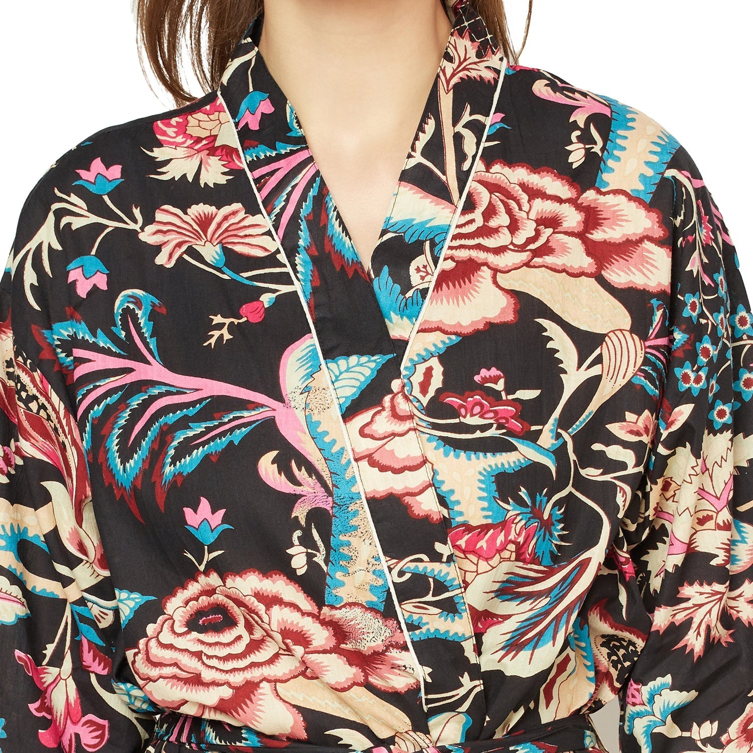 A beautiful Frida Kahlo inspired kimono robe for a super price. Perfect as a kimono, robe or a kaftan. Made from super comfy light weight cotton cambric so treat yourself to ultimate comfort whether you are simply winding up at night, getting ready for the morning or just cozying up in your lounge to binge watch a move on Netflix.