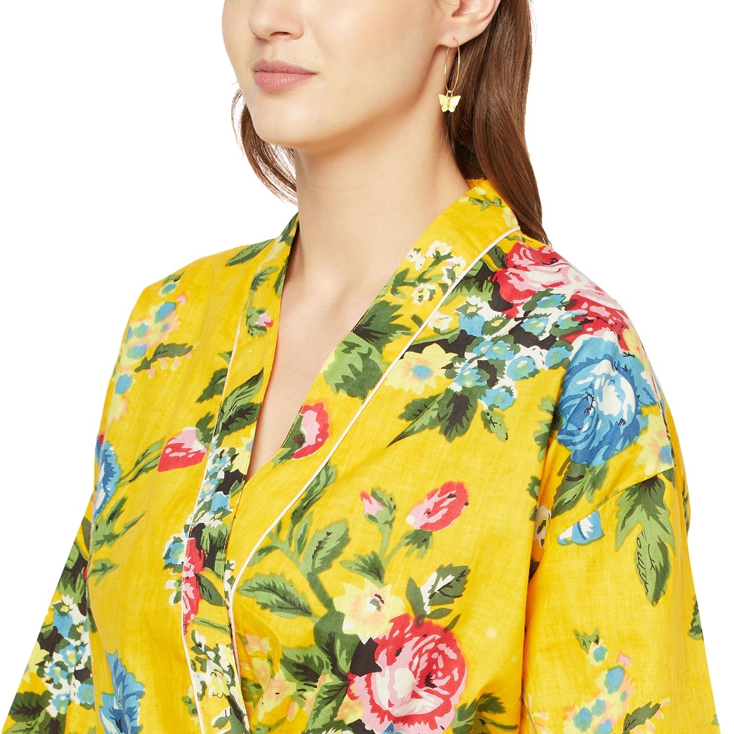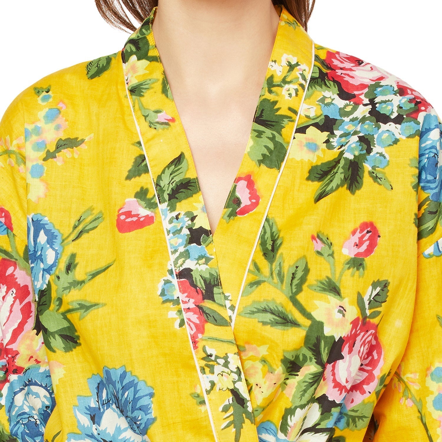 Radiant Blooms Cotton Kimono Robe - 100% Cotton