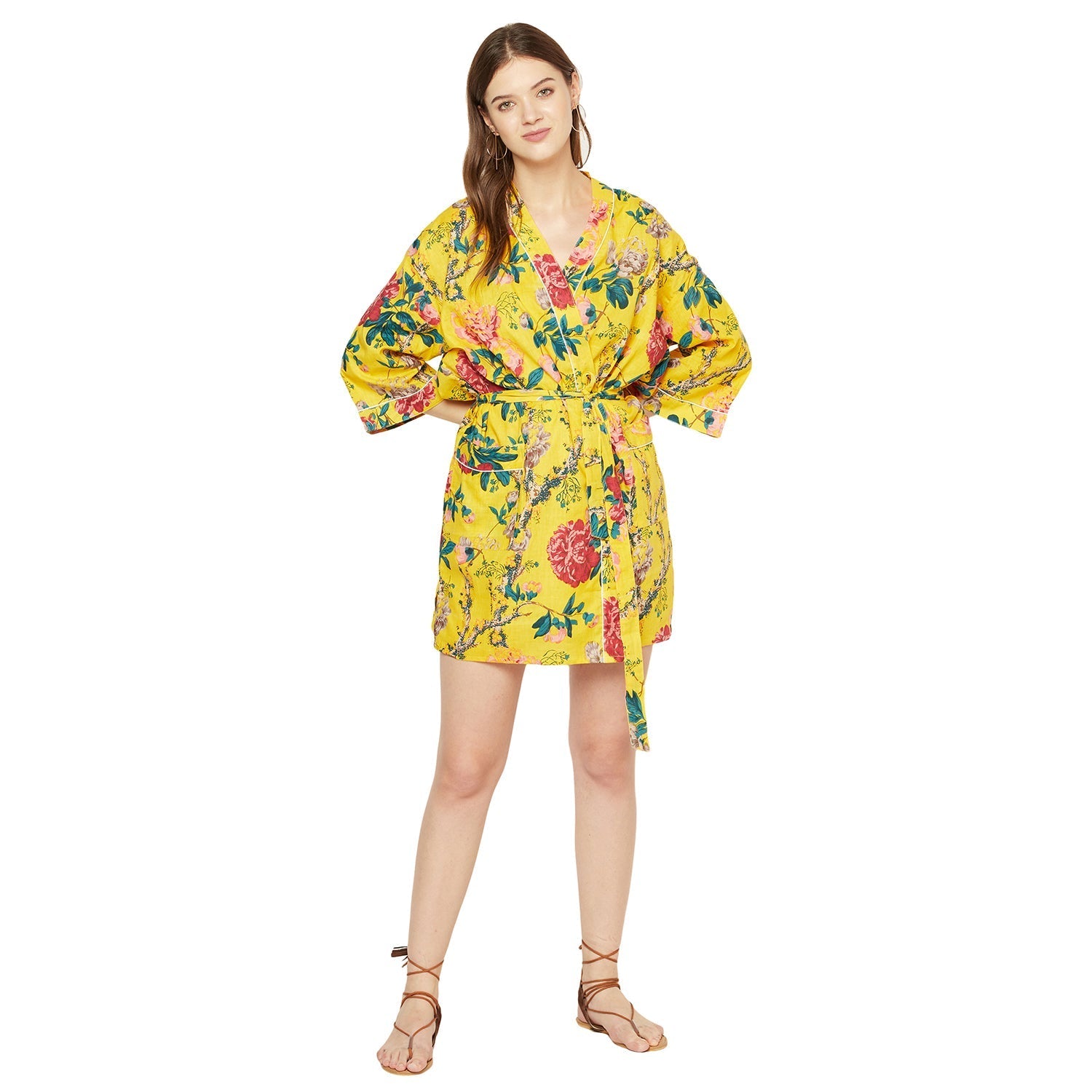 A beautiful Frida Kahlo inspired kimono robe for a super price. Perfect as a kimono, robe or a kaftan. Made from super comfy light weight cotton cambric so treat yourself to ultimate comfort whether you are simply winding up at night, getting ready for the morning or just cozying up in your lounge to binge watch a move on Netflix.