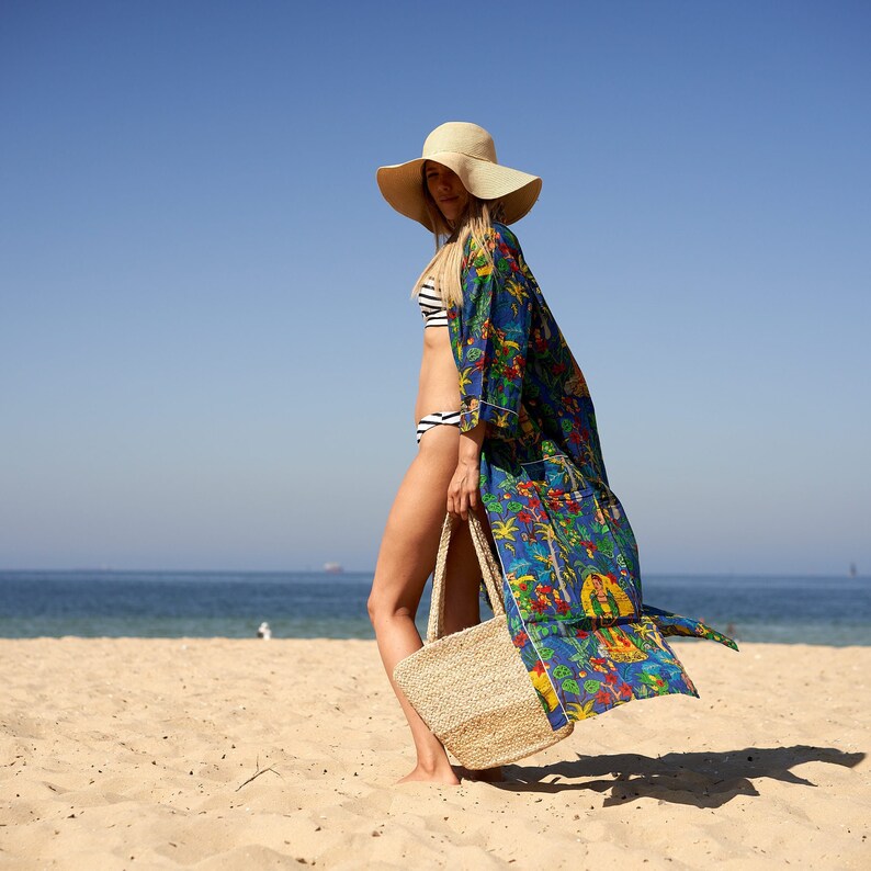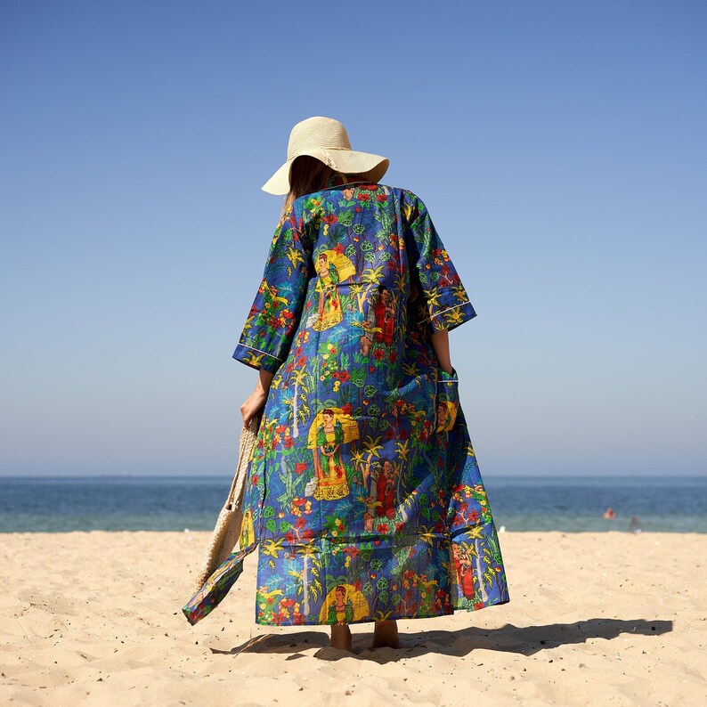 A beautiful Frida Kahlo inspired kimono robe for a super price. Perfect as a kimono, robe or a kaftan. Made from super comfy light weight cotton cambric so treat yourself to ultimate comfort whether you are simply winding up at night, getting ready for the morning or just cozying up in your lounge to binge watch a move on Netflix.