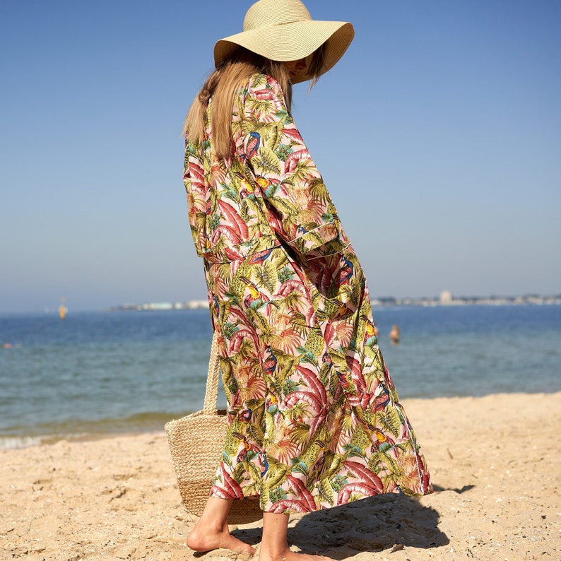 A beautiful Frida Kahlo inspired kimono robe for a super price. Perfect as a kimono, robe or a kaftan. Made from super comfy light weight cotton cambric so treat yourself to ultimate comfort whether you are simply winding up at night, getting ready for the morning or just cozying up in your lounge to binge watch a move on Netflix.