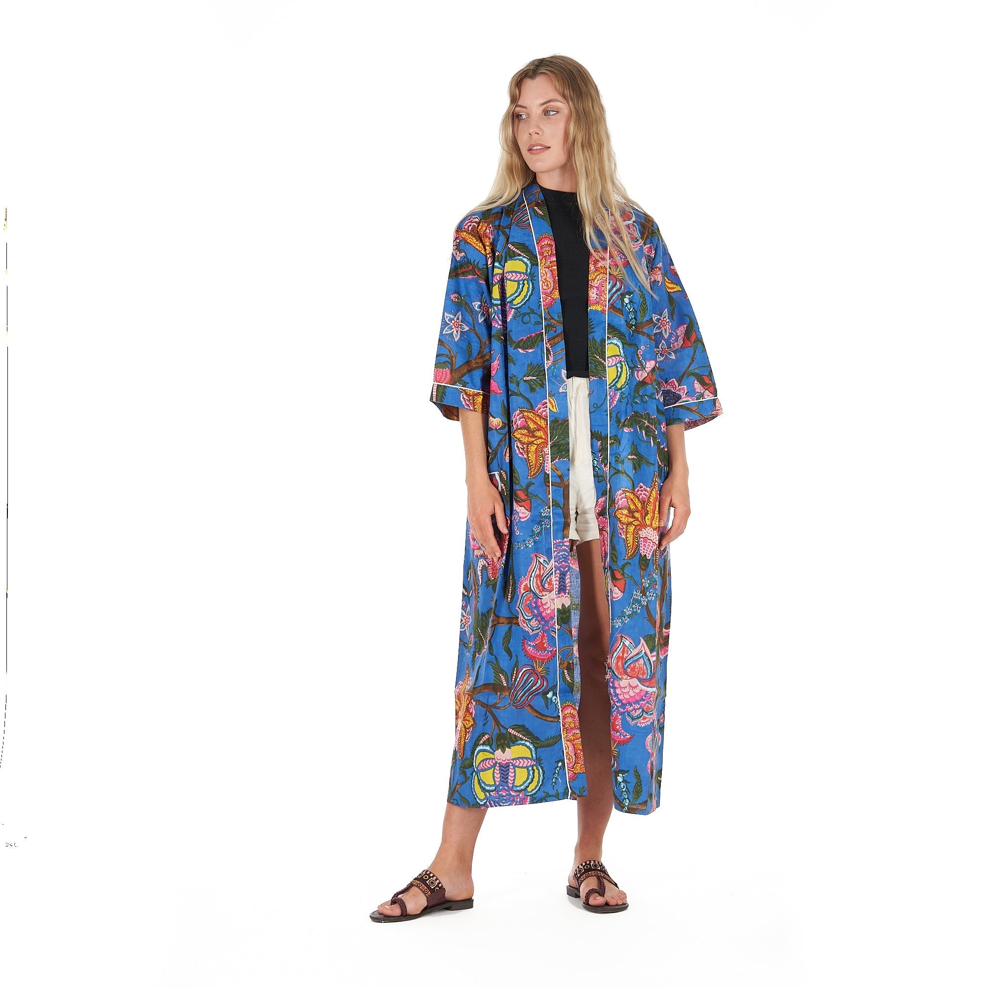 A beautiful Frida Kahlo inspired kimono robe for a super price. Perfect as a kimono, robe or a kaftan. Made from super comfy light weight cotton cambric so treat yourself to ultimate comfort whether you are simply winding up at night, getting ready for the morning or just cozying up in your lounge to binge watch a move on Netflix.