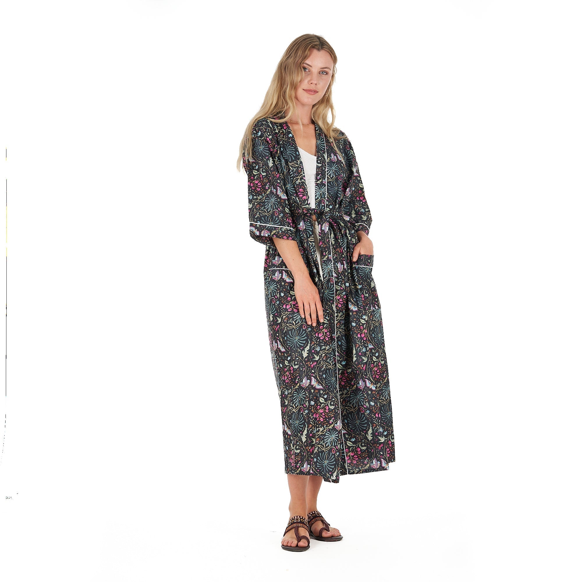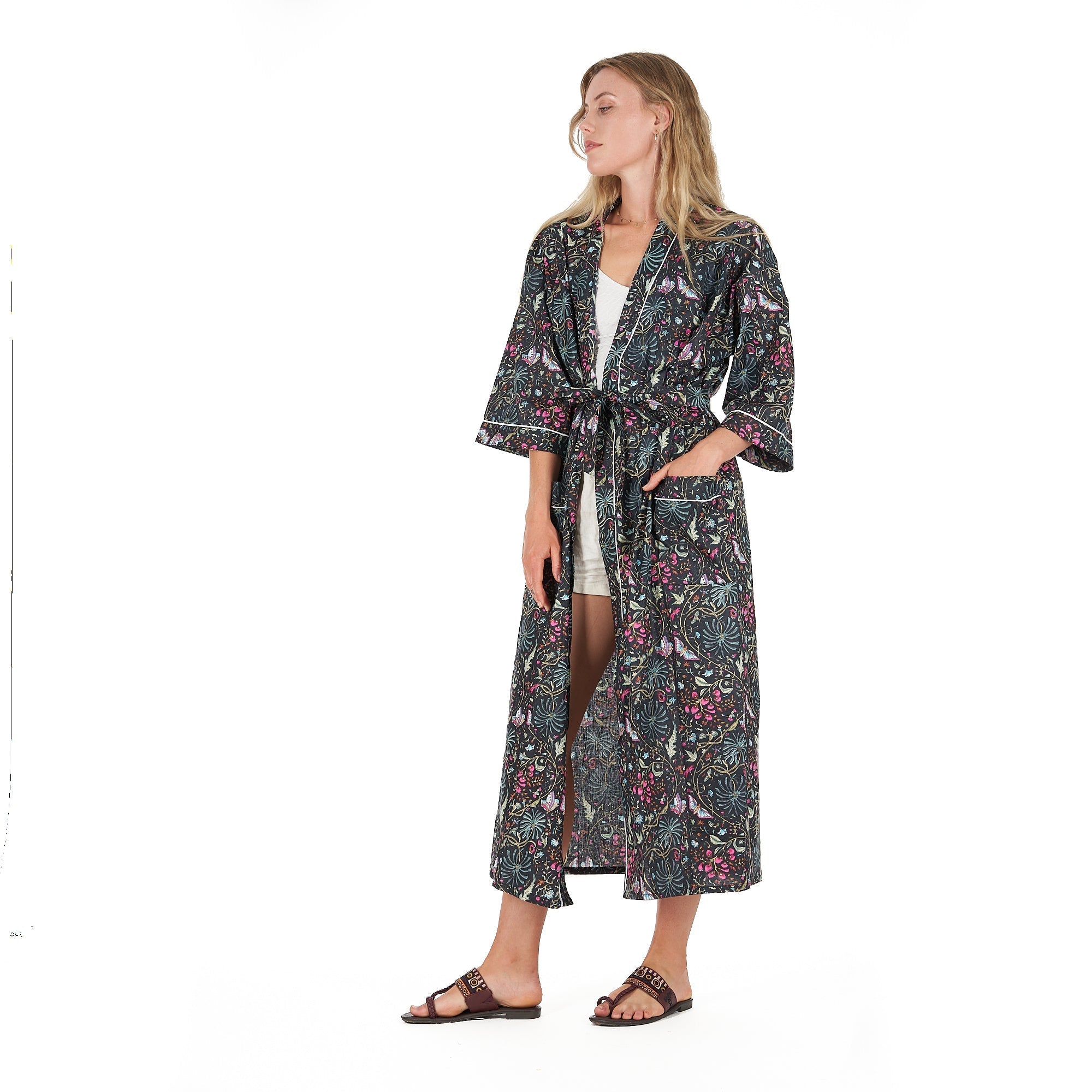 A beautiful Frida Kahlo inspired kimono robe for a super price. Perfect as a kimono, robe or a kaftan. Made from super comfy light weight cotton cambric so treat yourself to ultimate comfort whether you are simply winding up at night, getting ready for the morning or just cozying up in your lounge to binge watch a move on Netflix.