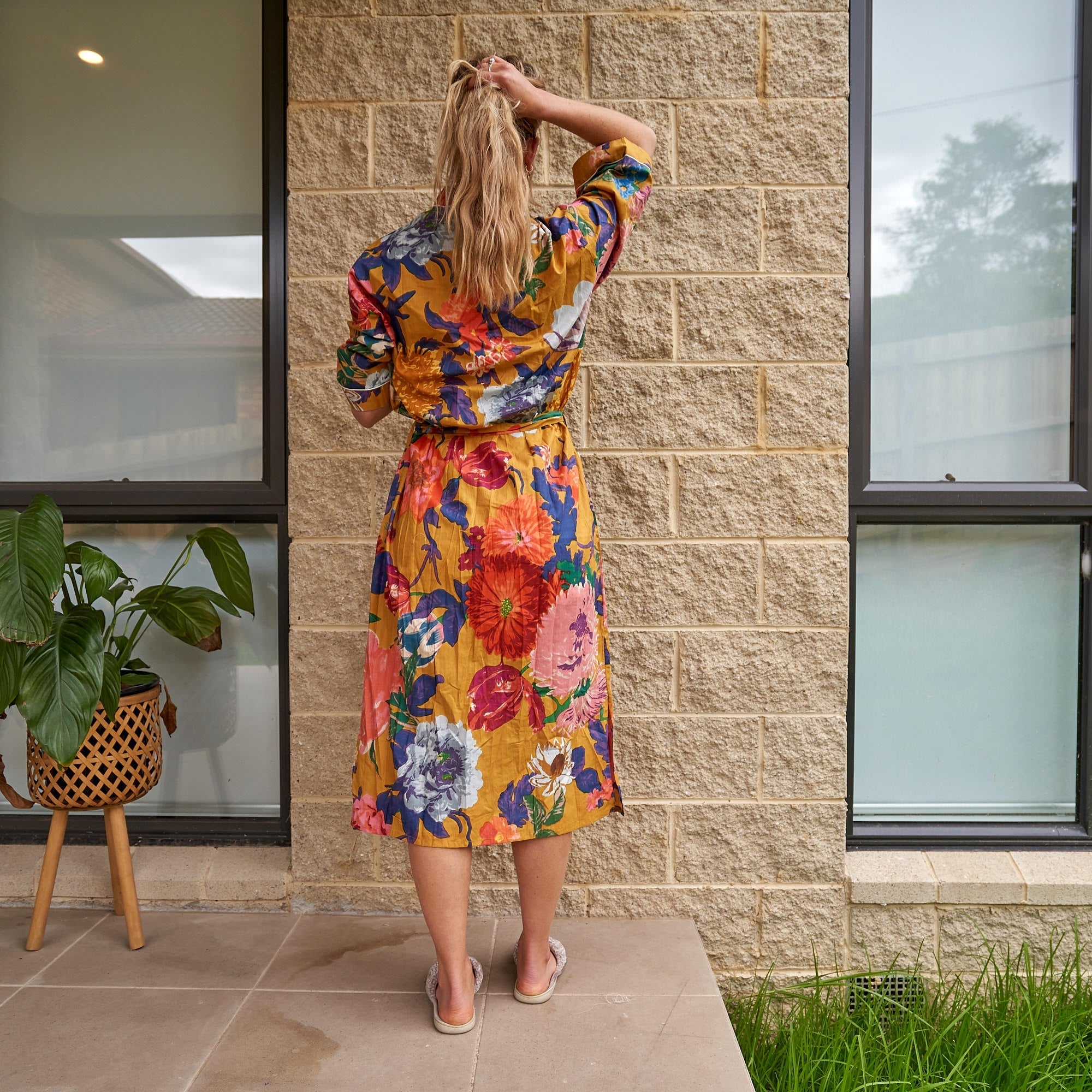 A beautiful Frida Kahlo inspired kimono robe for a super price. Perfect as a kimono, robe or a kaftan. Made from super comfy light weight cotton cambric so treat yourself to ultimate comfort whether you are simply winding up at night, getting ready for the morning or just cozying up in your lounge to binge watch a move on Netflix.