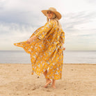 MUSTARD FLORAL' Women's Cotton Kimono Robe - Bold Design