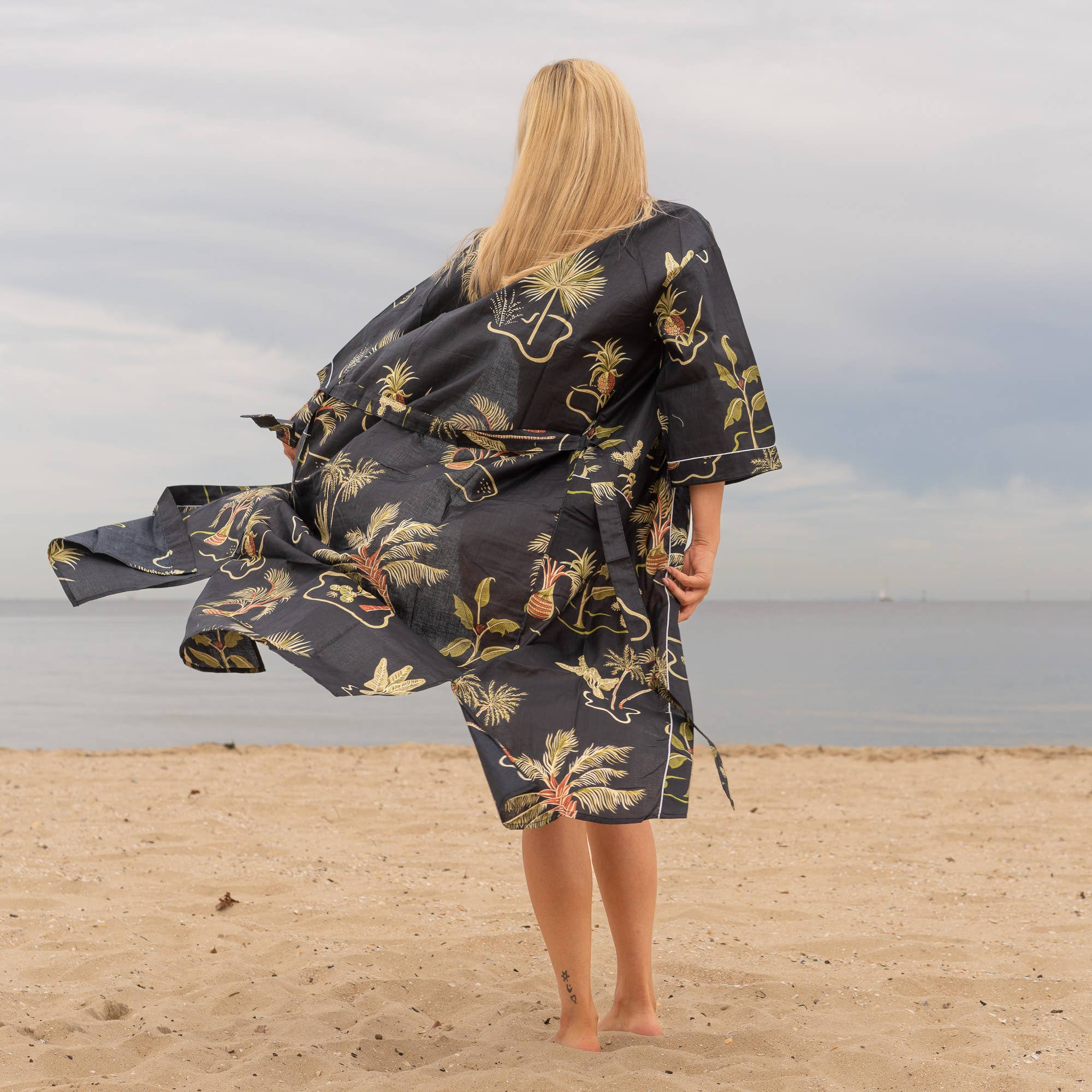 Tropical Black' Women's Cotton Kimono Robe - Exotic Look