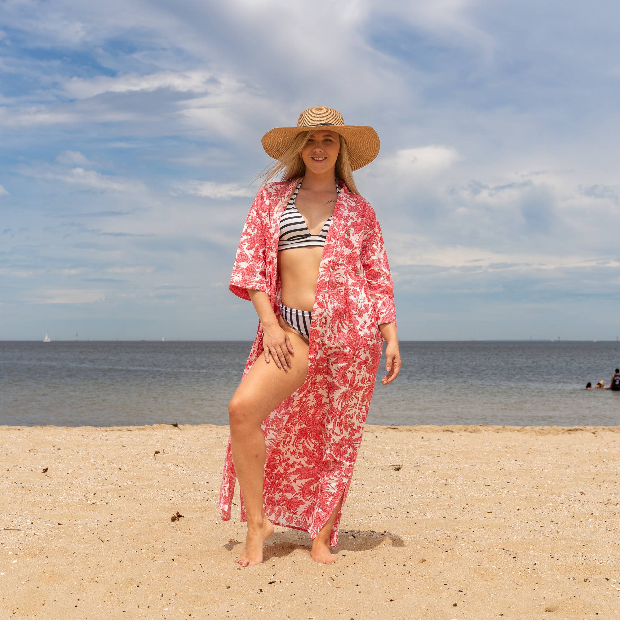 TROPICAL REDS' Women's Cotton Kimono Robe - Bold Style