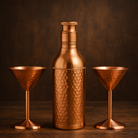 This premium barware set includes one hammered copper cocktail shaker bottle paired with two steel cocktail glasses with copper plating, making it perfect for entertaining guests, gifting, or elevating your everyday drink experience.