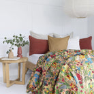 Beige Frida Kantha Quilt Blanket - Indian Bedspread