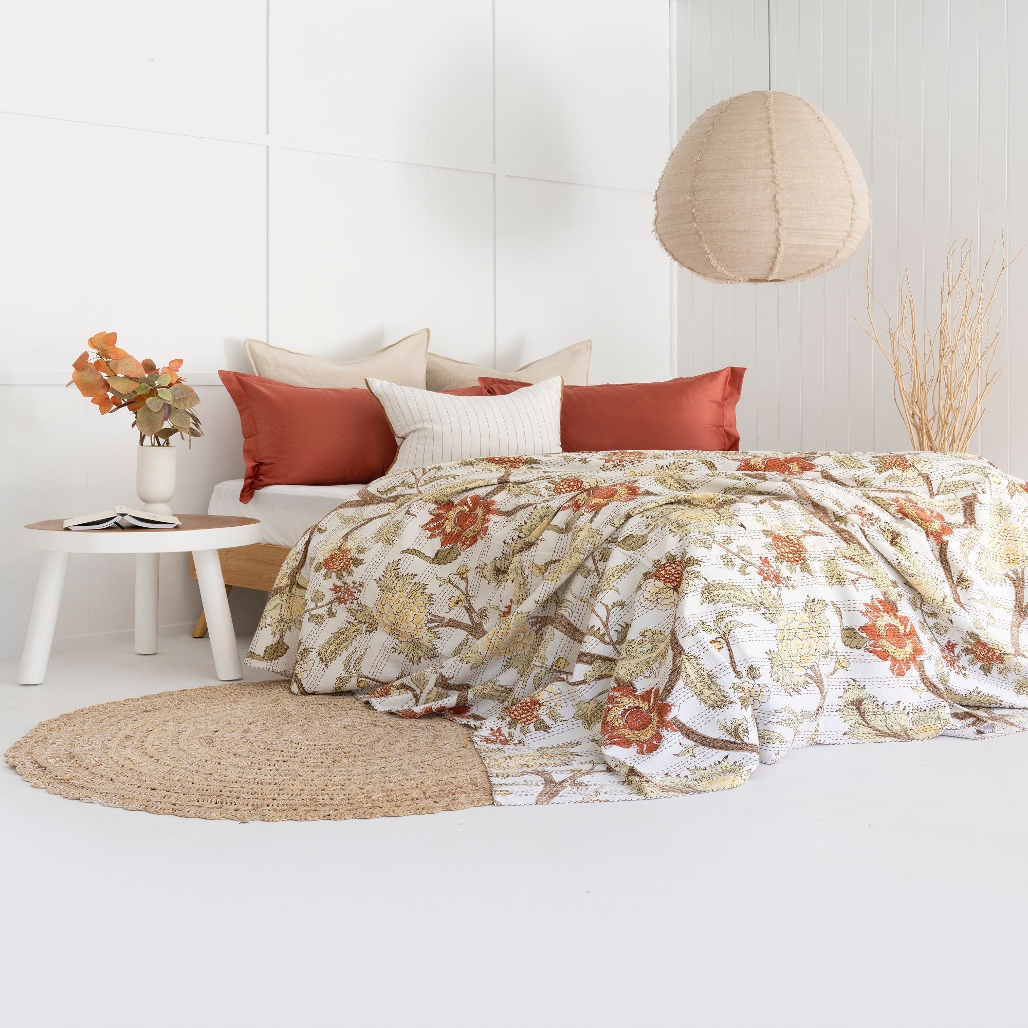 Hand crafted softly quilted handmade by artisans in India. The entire quilt is painstakingly hand embroidered with end number of straight running stitches to create a unique product, one of a kind (No two are alike), thus it’s a perfect GIFT too (Wedding Gift). All these make them a Vintage Kantha Quilt.