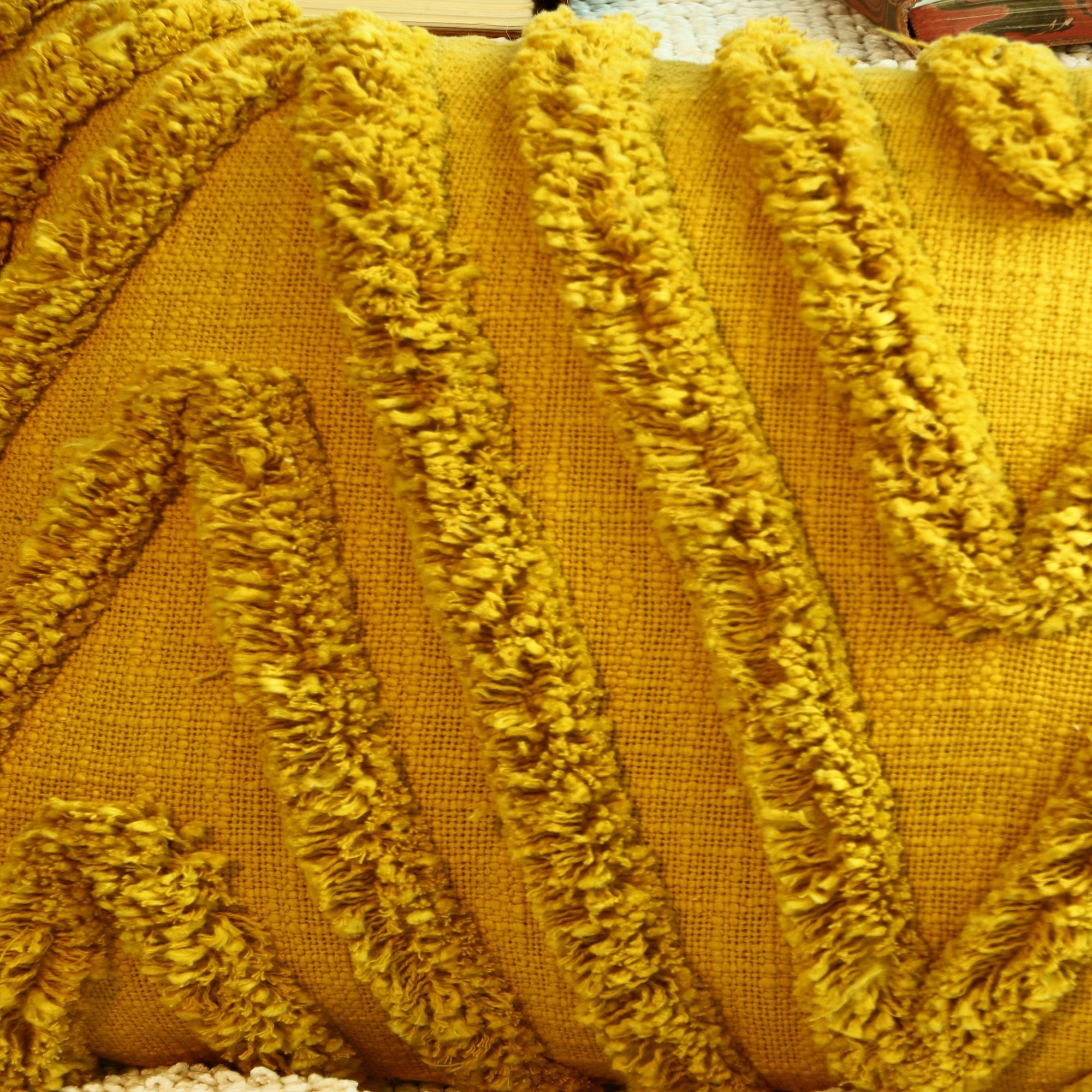 Yellow Boho Moroccan Tassels Cushion Cover