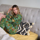 A stylish and cute pajama set to make it possible to enjoy anything life has to offer in leisure and comfort whether enjoying the morning coffee on the sofa or cozying up on a winter night watching a movie on Netflix.