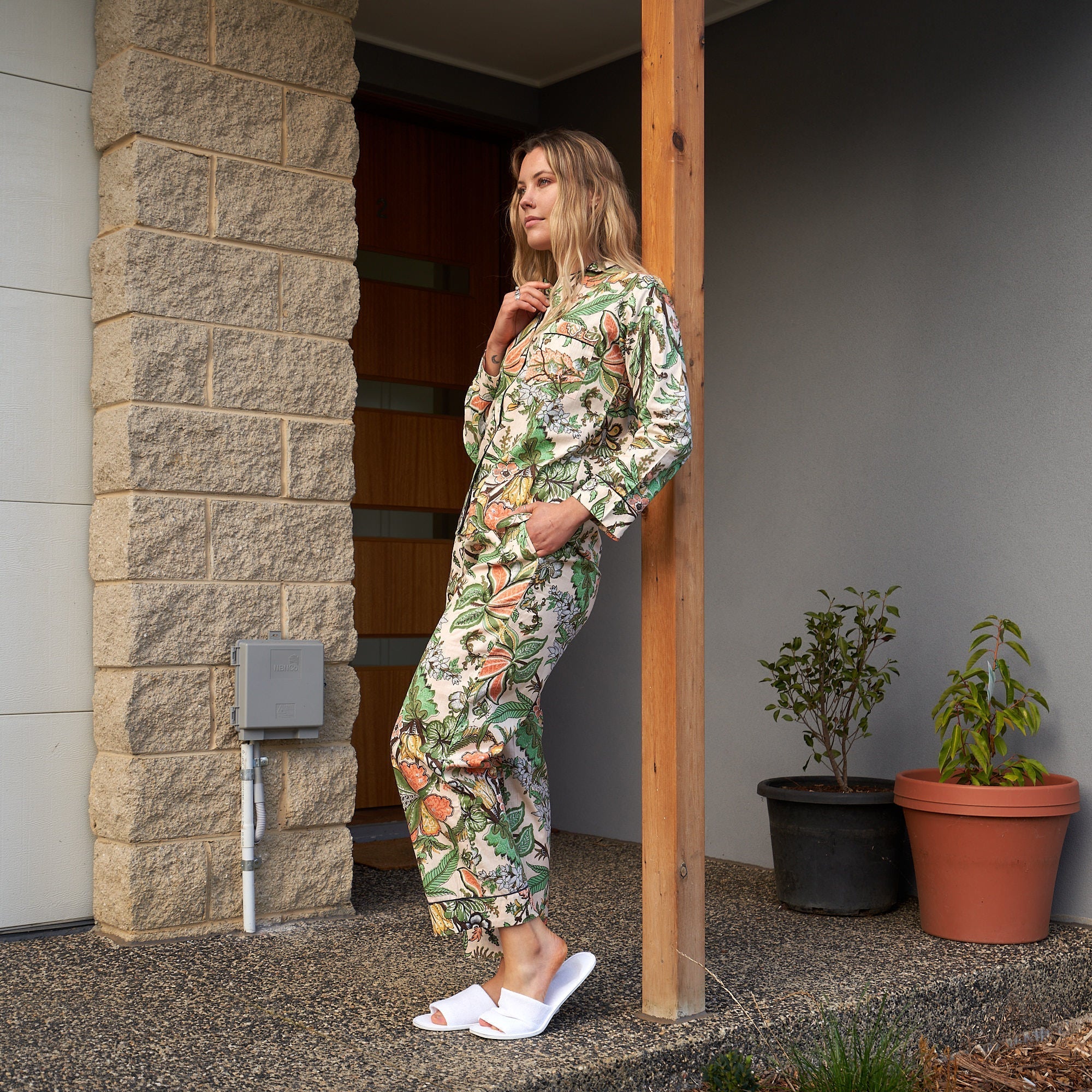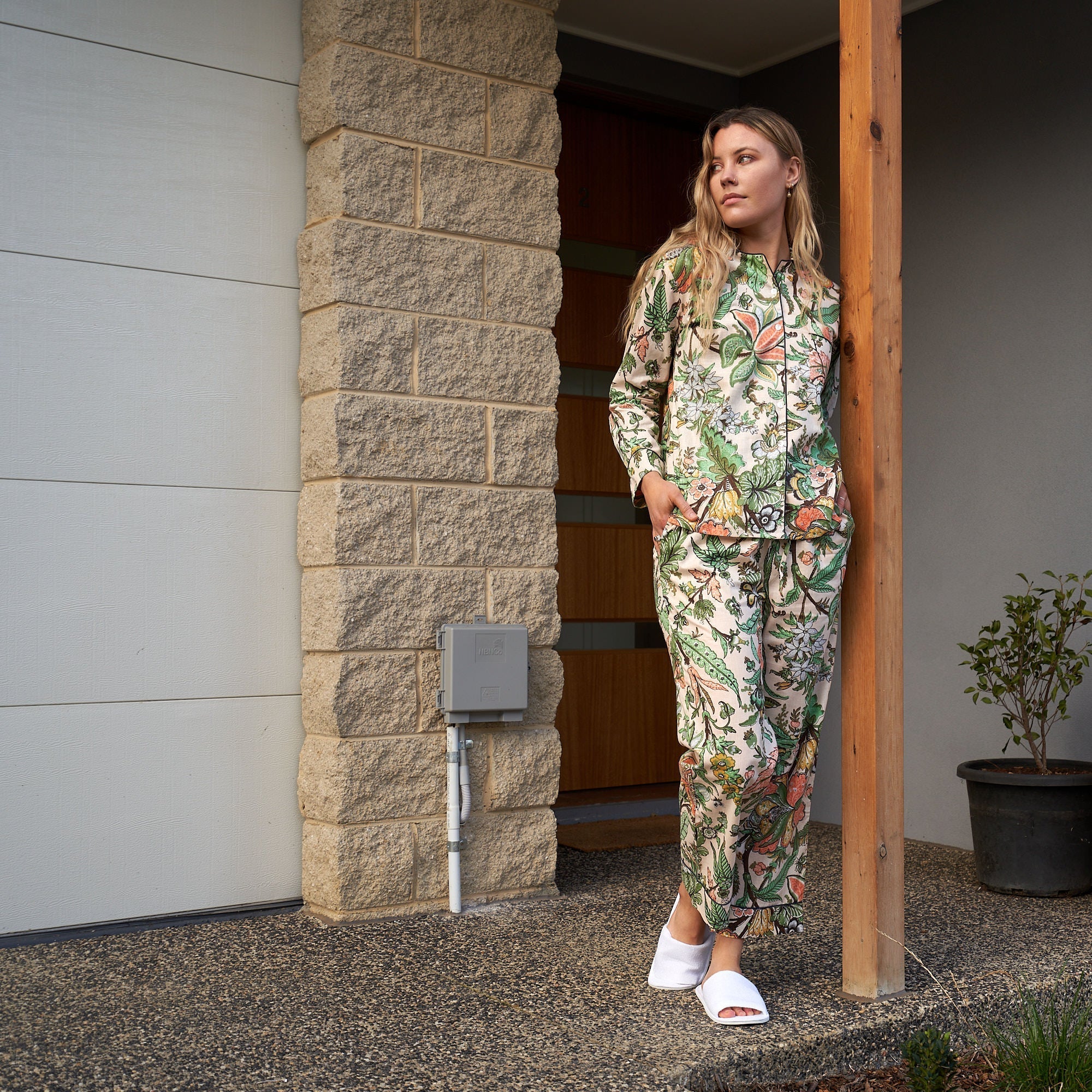 A stylish and cute pajama set to make it possible to enjoy anything life has to offer in leisure and comfort whether enjoying the morning coffee on the sofa or cozying up on a winter night watching a movie on Netflix.