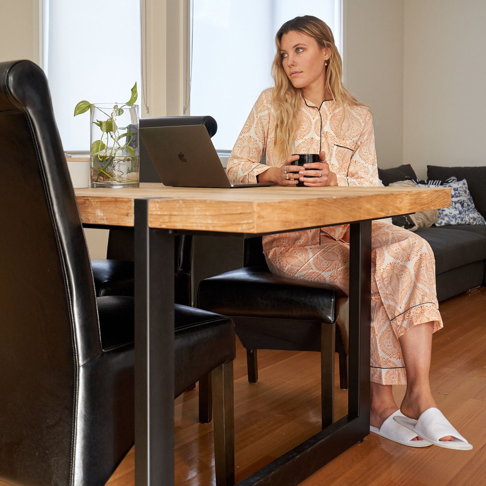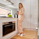 A stylish and cute pajama set to make it possible to enjoy anything life has to offer in leisure and comfort whether enjoying the morning coffee on the sofa or cozying up on a winter night watching a movie on Netflix.