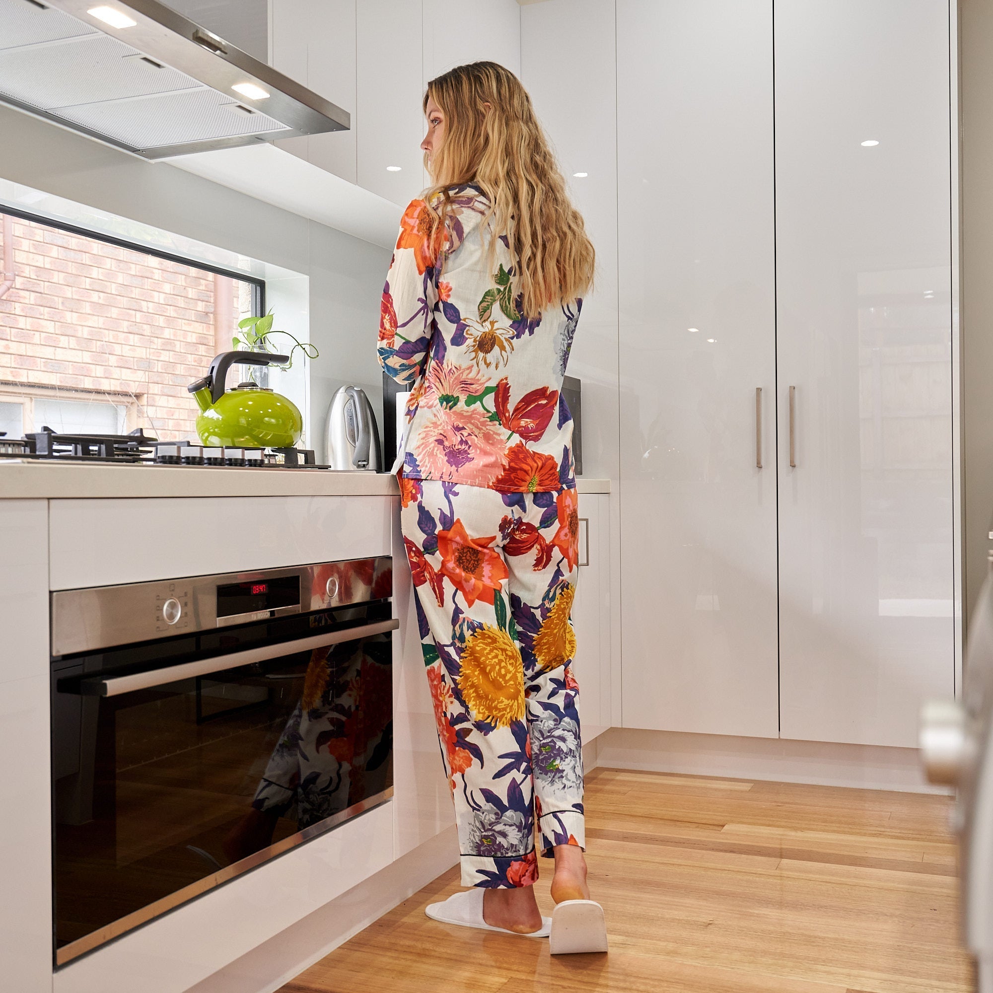 A stylish and cute pajama set to make it possible to enjoy anything life has to offer in leisure and comfort whether enjoying the morning coffee on the sofa or cozying up on a winter night watching a movie on Netflix.