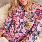 A stylish and cute pajama set to make it possible to enjoy anything life has to offer in leisure and comfort whether enjoying the morning coffee on the sofa or cozying up on a winter night watching a movie on Netflix.