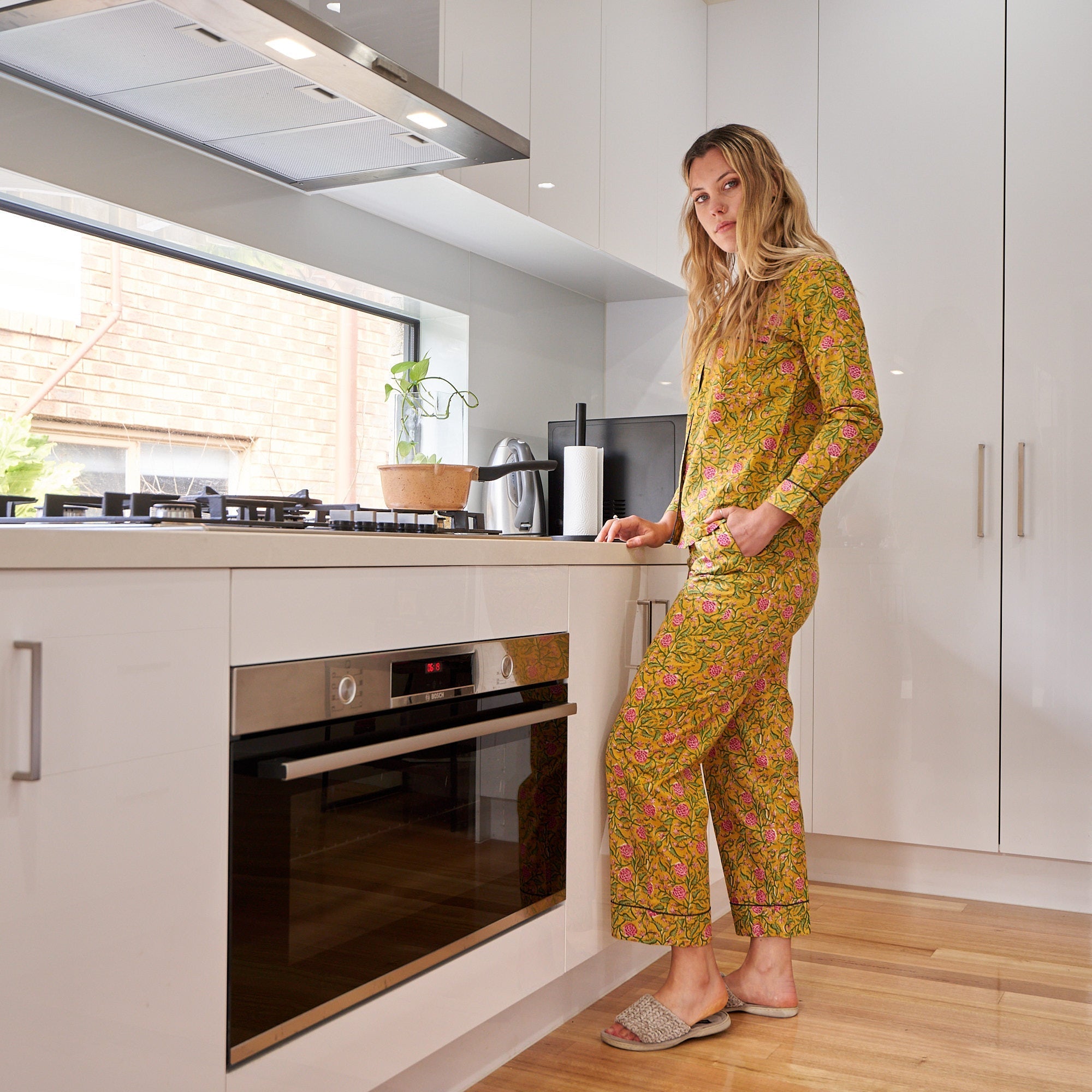 A stylish and cute pajama set to make it possible to enjoy anything life has to offer in leisure and comfort whether enjoying the morning coffee on the sofa or cozying up on a winter night watching a movie on Netflix.