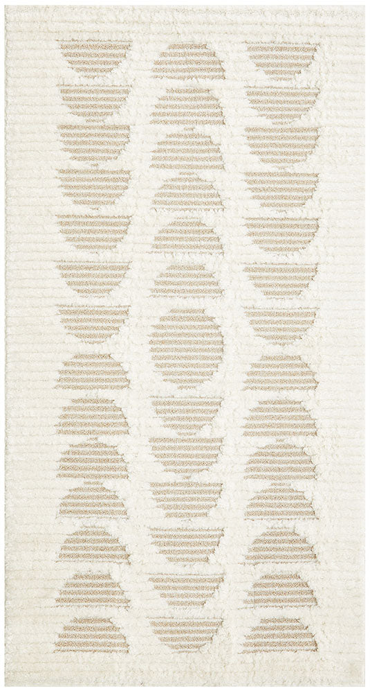 The Marigold Lou Abstract Moon rug exudes contemporary sophistication with its modern elegance. Featuring a soft pile in a blend of soft beige and creamy, white colours, it brings both warmth and versatility to any space. The geometric design, highlighted by a central full circle and vertical half-moon shapes, is crafted through a unique high-low pile technique that adds depth and texture. This visually striking contrast enhances the overall aesthetic. Ideal for entryways and hallways, this runner enhances your home with timeless beauty, plush comfort, and a touch of modern charm.
