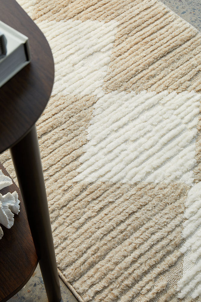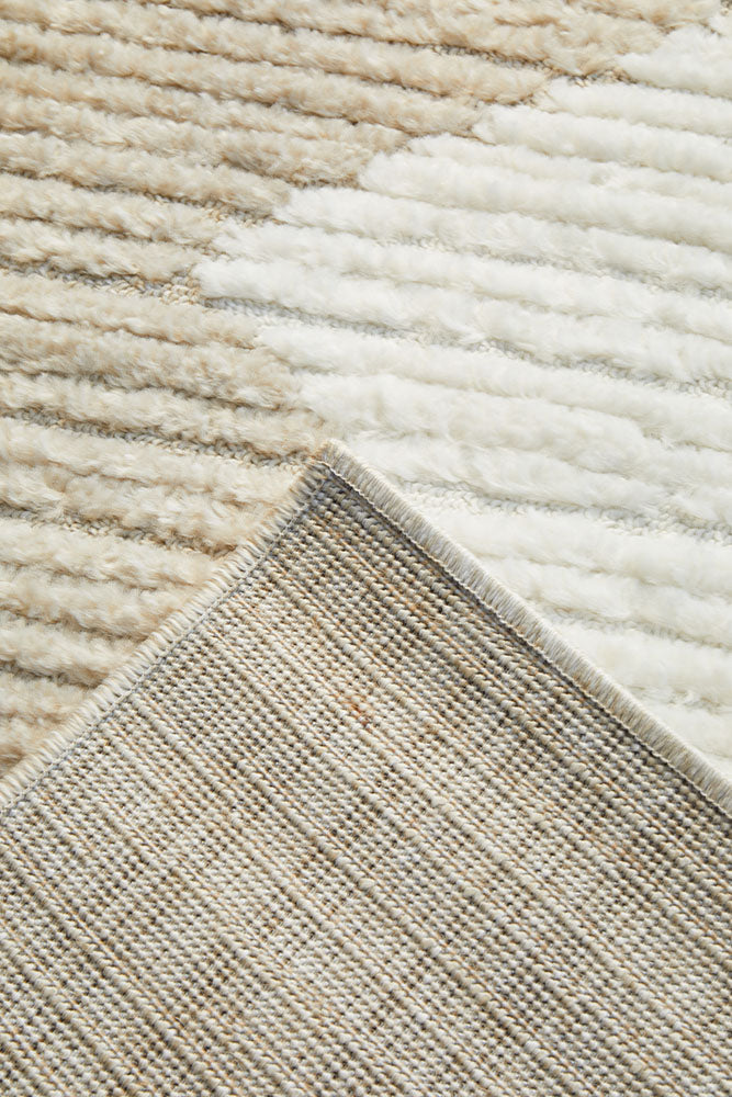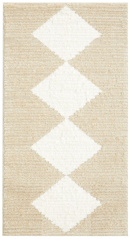 The Marigold Payton Diamond rug showcases a sophisticated blend of ivory and beige colours, perfect for adding elegance to any space. Featuring a diamond pattern in ivory, this rug is crafted with high and low pile construction, creating a beautiful textured effect throughout. This contrast enhances the rug's visual appeal, making it both interesting and striking. Ideal for entryways and hallways, this runner combines timeless beauty with modern charm, elevating your home decor with its sophisticated design and plush comfort.