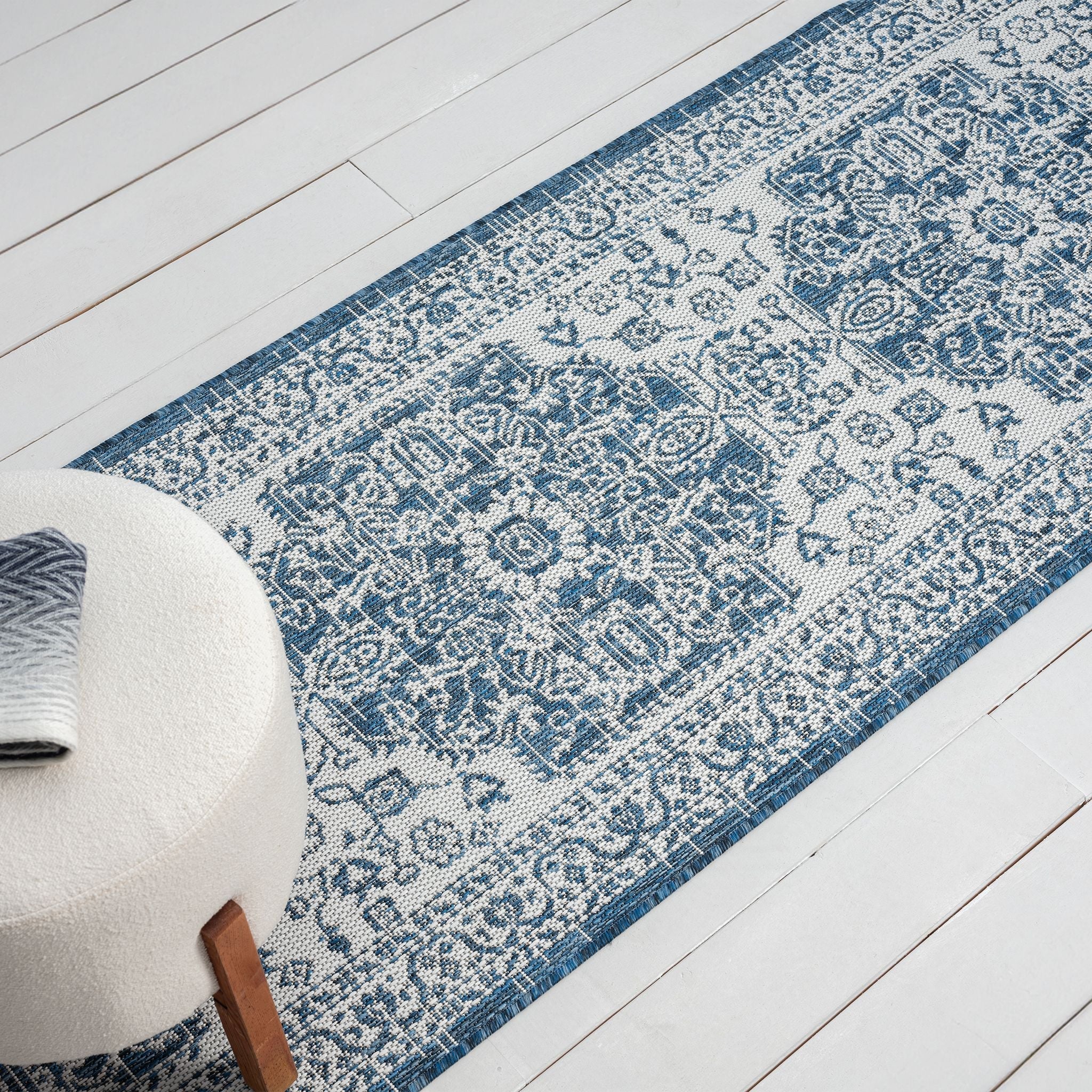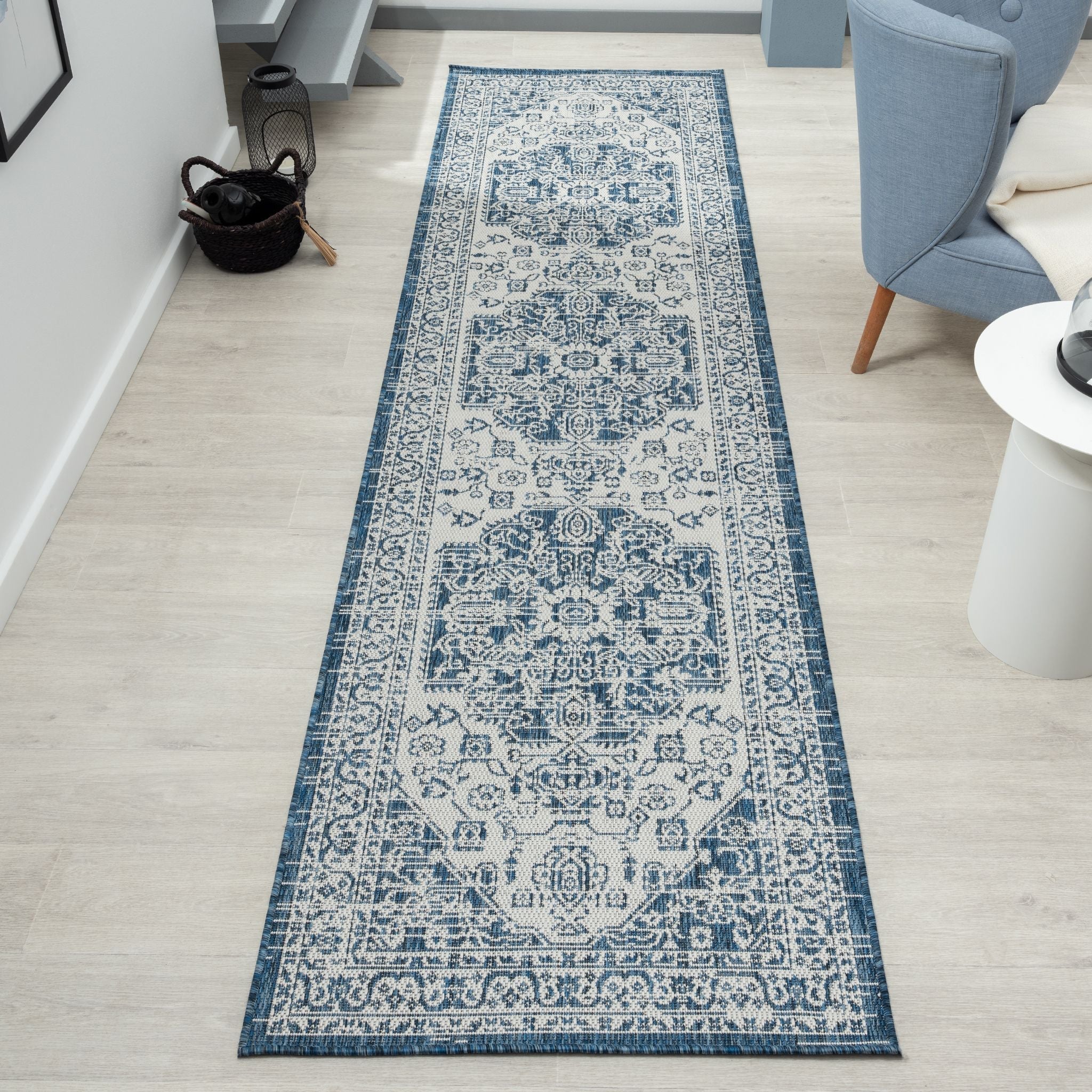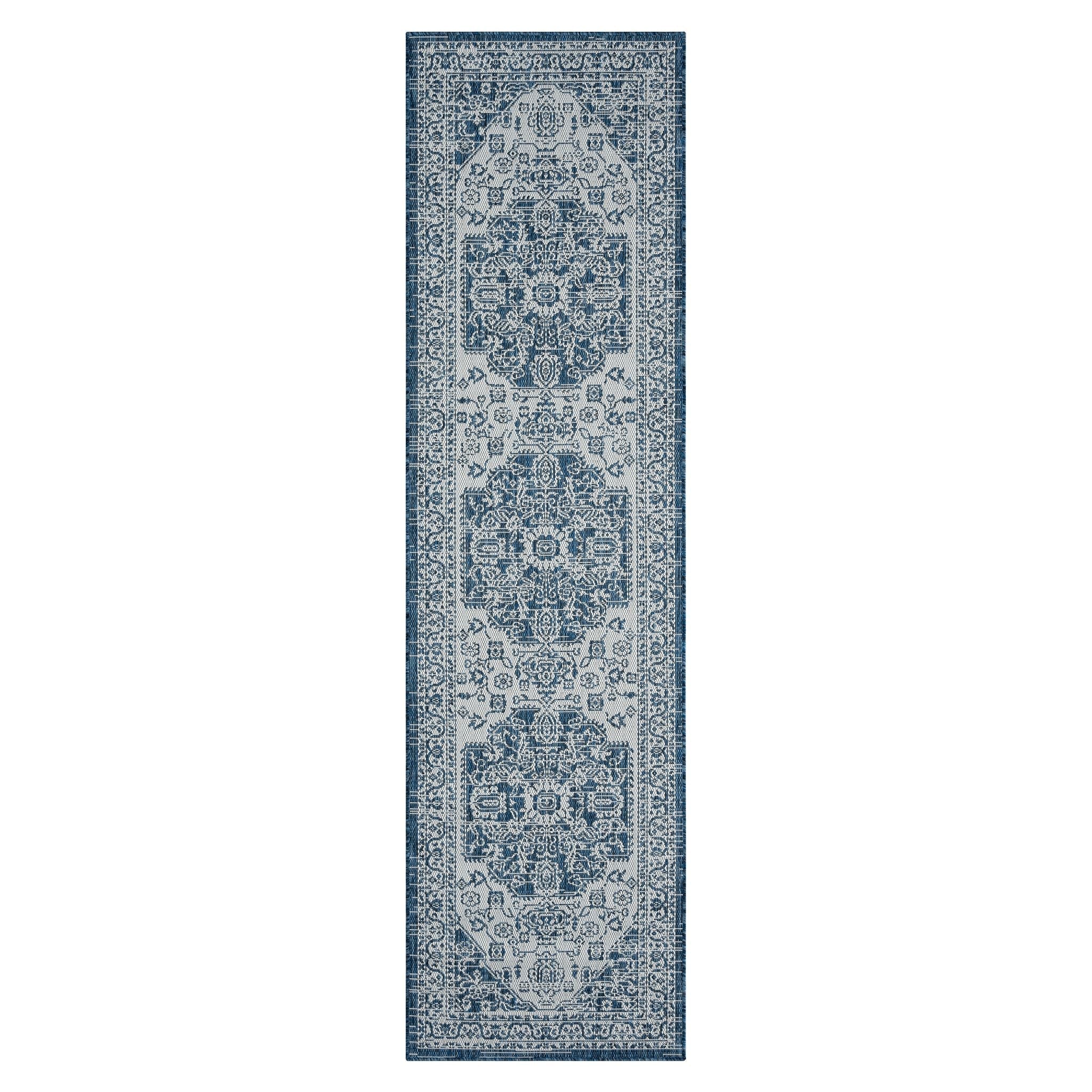 Patio 455 Denim Blue Runner Rug - Boho Hallway Style