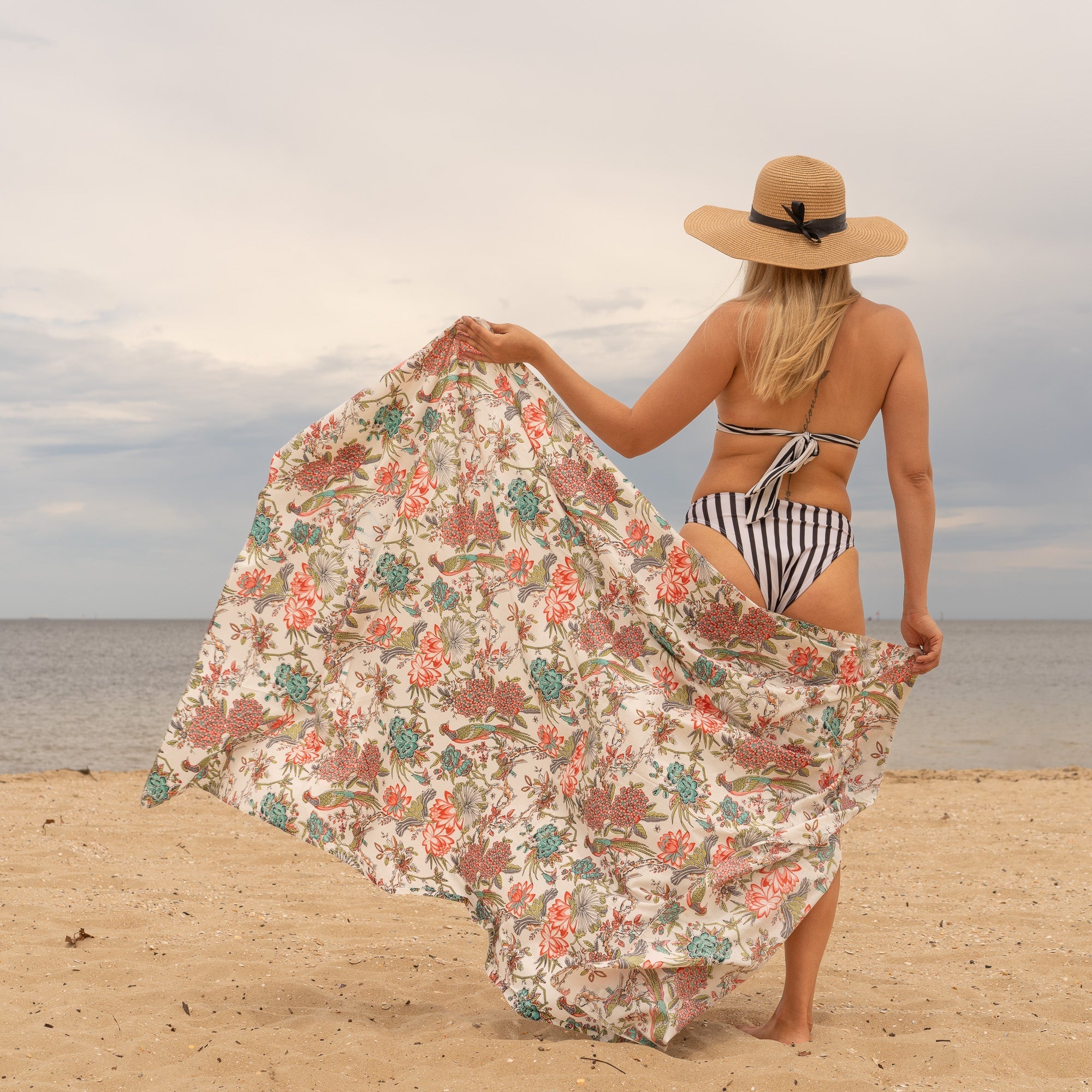 Our cotton boho handmade block print sarongs are perfect as a swimsuit cover up, beach skirt, scarf, shawl, quick drying beach blanket. This lovely tropical, beautiful and bold pareo beach sarong is perfect for so many occasions! Use it as a miniskirt, strapless top or just tie it around your waist as a swim cover pareo de playa cover up.
