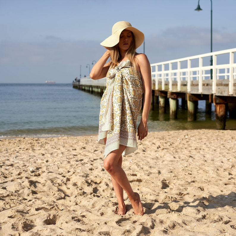 Our cotton boho handmade block print sarongs are perfect as a swimsuit cover up, beach skirt, scarf, shawl, quick drying beach blanket. This lovely tropical, beautiful and bold pareo beach sarong is perfect for so many occasions! Use it as a miniskirt, strapless top or just tie it around your waist as a swim cover pareo de playa cover up.