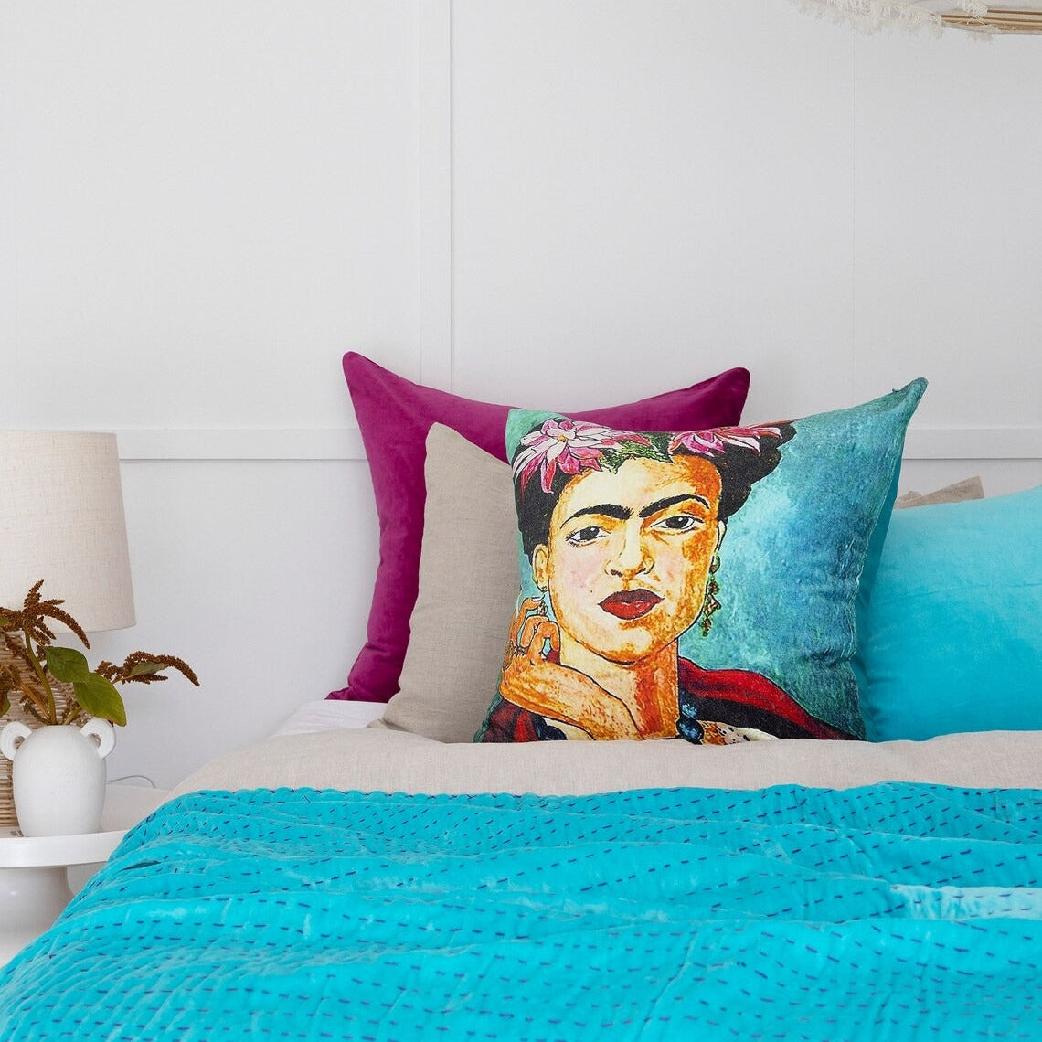 Add that touch of colour to your lounge/bedroom with this Vintage Hand Made Cotton Velvet Kantha Bed Spread/ Throw/ Quilt from Boho-Eclectica.