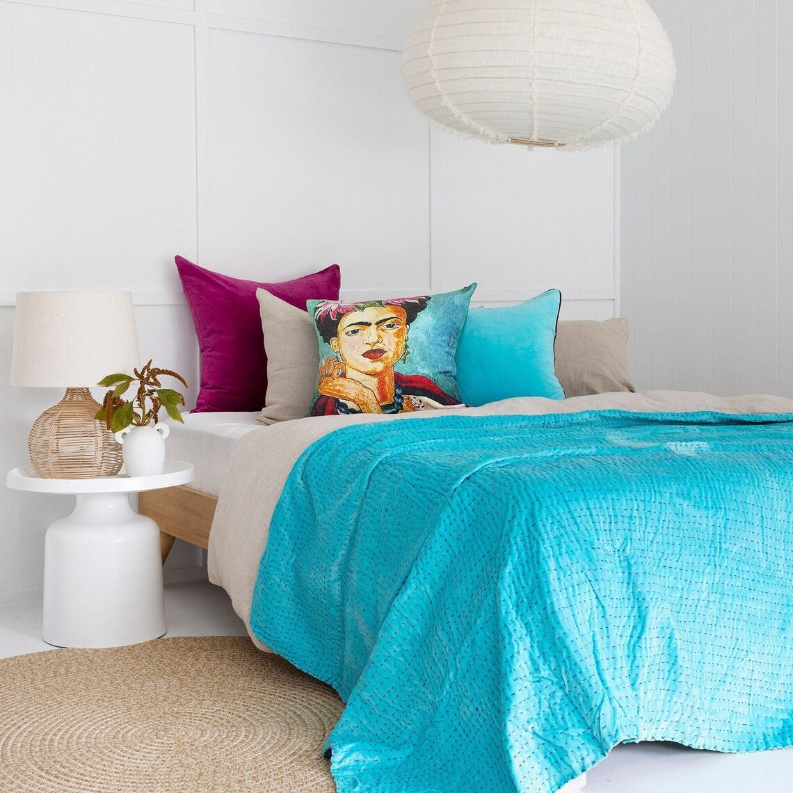 Velvet Kantha Quilt - Boho Sky Block Print | Indian