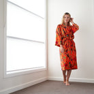A beautiful Frida Kahlo inspired kimono robe for a super price. Perfect as a kimono, robe or a kaftan. Made from super comfy cotton velvet so treat yourself to ultimate comfort whether you are simply winding up at night, getting ready for the morning or just cozying up in your lounge to binge watch a move on Netflix.