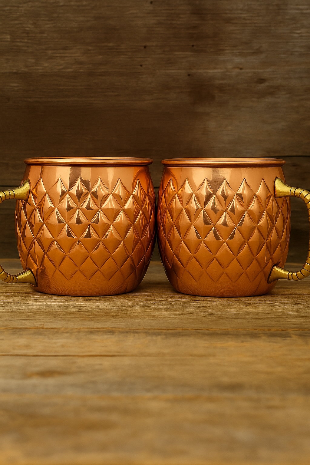 Serve your chilled drinks in style with the Pure Copper Diamond Design Moscow Mule Mug. Crafted from pure copper and adorned with a striking diamond-hammered pattern, this handcrafted mug delivers both aesthetic charm and superior performance—ideal for Moscow Mule lovers, or anyone seeking a standout piece in their drinkware collection.