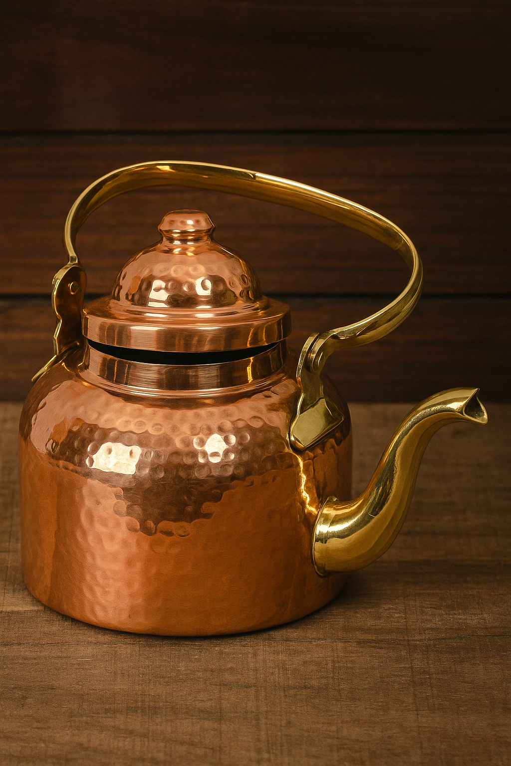 Pure Copper Hammered Tea Pot with Brass Handle – Tin Lined Inside